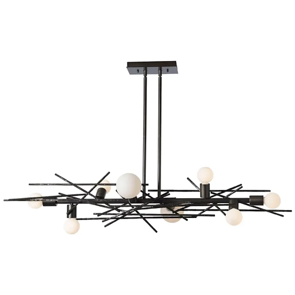 Embodying Hubbardton Forge's commitment to high-quality craftsmanship, the Brindille 8-Light Linear Suspension is a showcase of style and substance. Meticulously handmade in Vermont, USA, this transitional fixture exhibits a linear design forged in robust steel. The unique arrangement of exposed bulbs creates a warm and inviting illumination ideal for various rooms of your home. Though it exhibits a minimalistic silhouette, the Brindille Pendant manages to make a distinct impression with its radiant allure and well-balanced proportions.