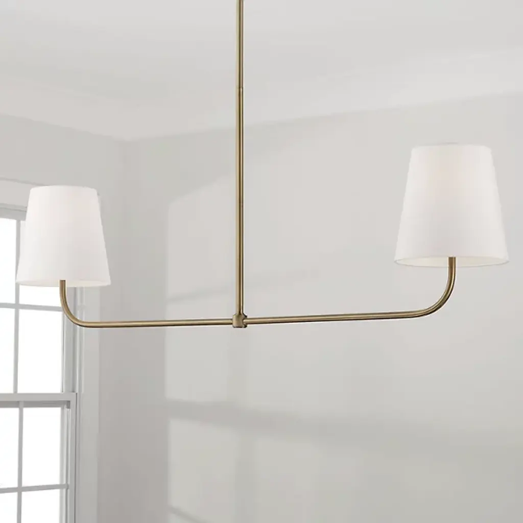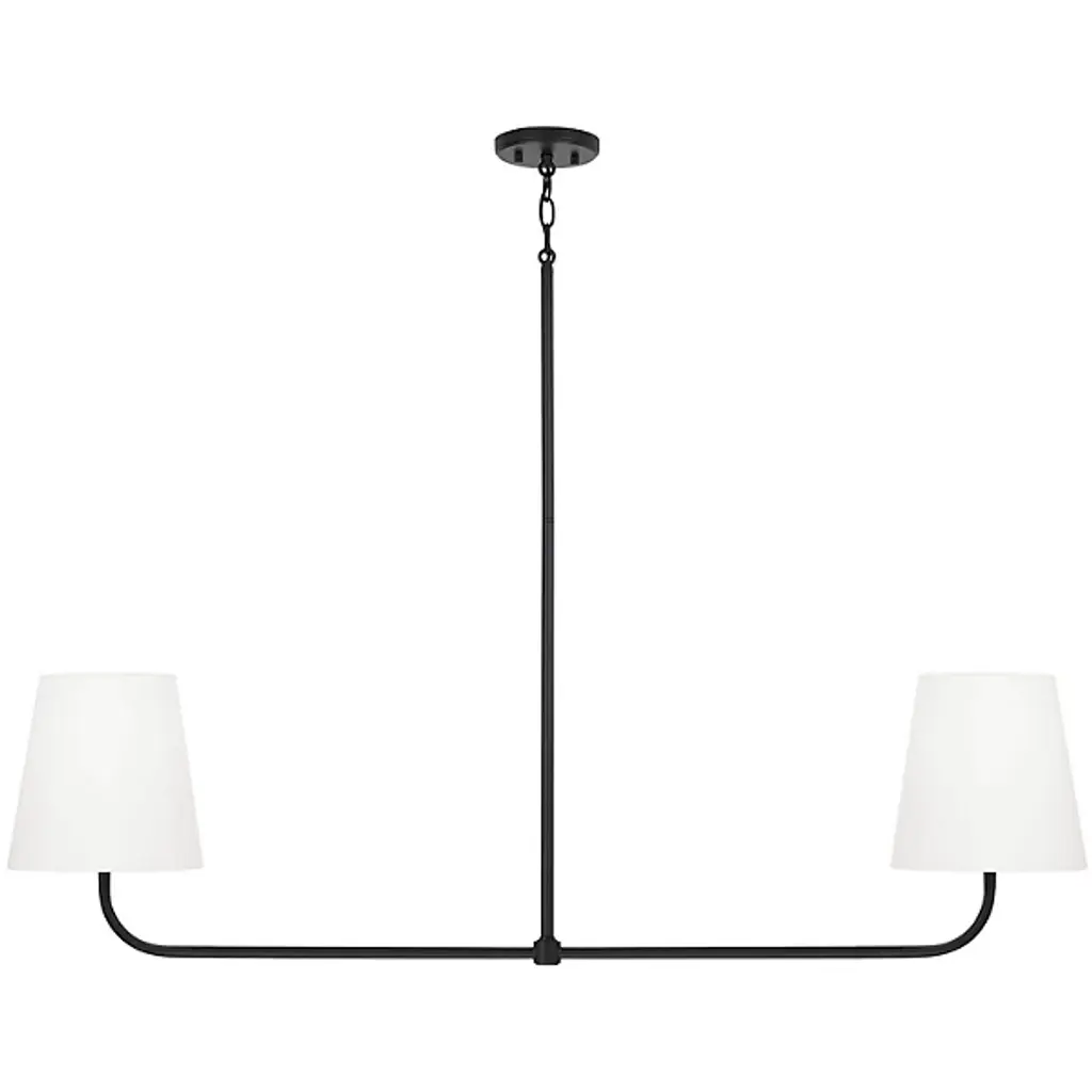 Embodying true minimalist form, the Brody Linear Suspension by Capital Lighting brings a farmhouse, simplified style to your living space. A framework of fine metal secures a pair of white fabric shades that radiate bright light from candelabra base LED lamps. The eye is drawn to the shades’ contoured, bin-like forms.