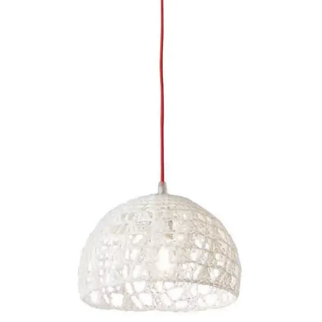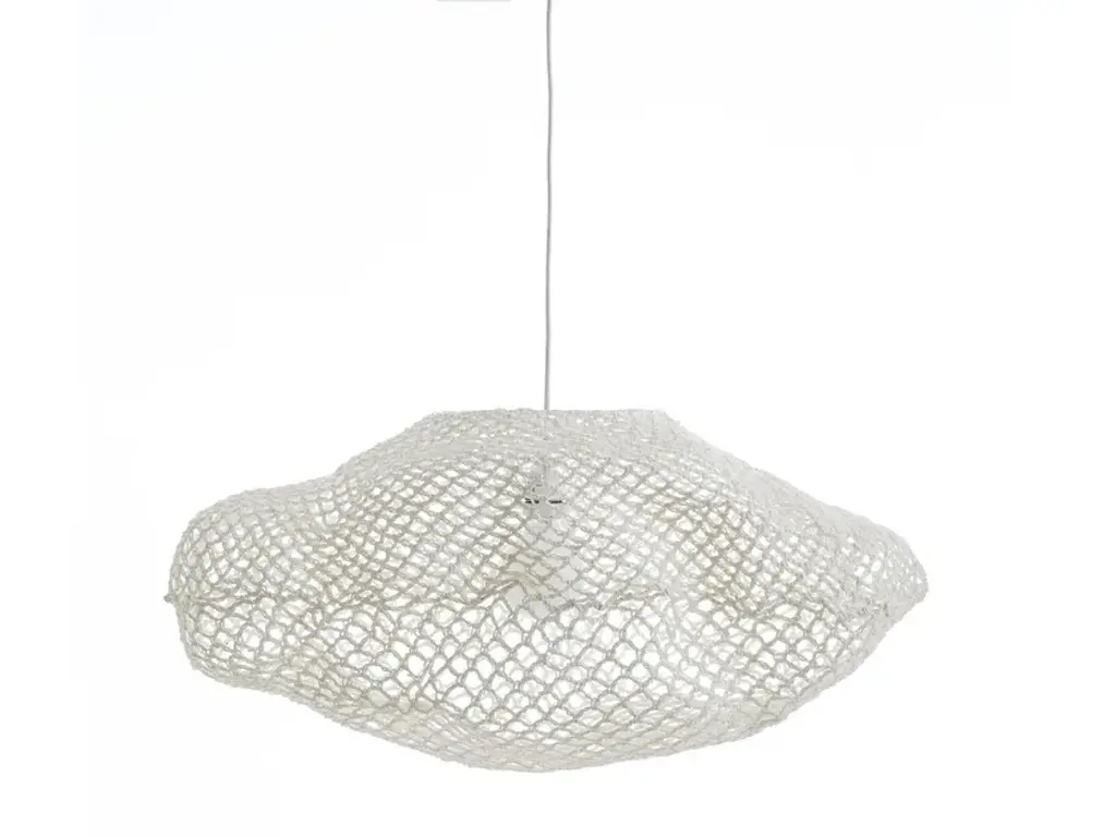 The C U C Me collection plays with random translucent patterns framed within symmetrical boxes. Its wire frame is dipped into a vat of Salago fiber, forming interesting textures as it dries.