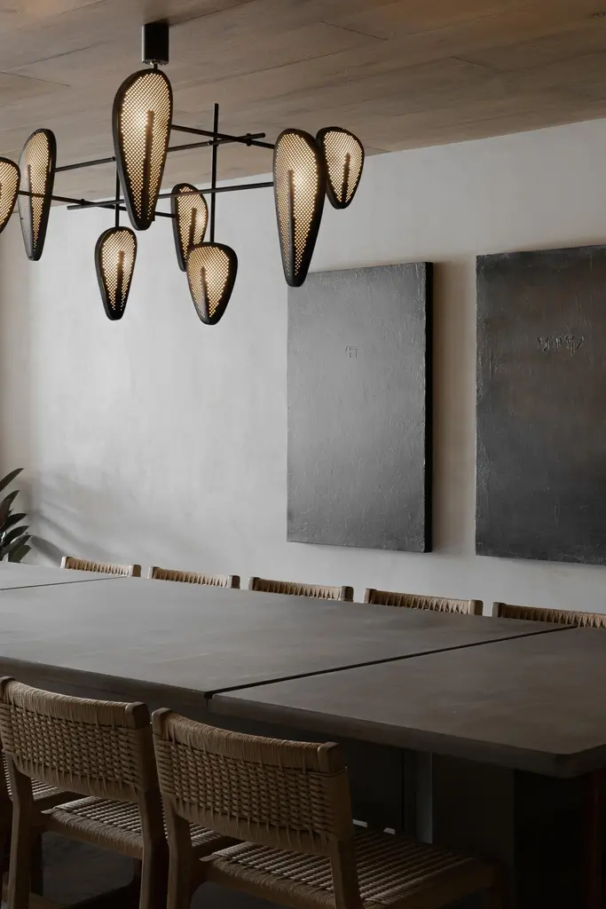 Candelera 02 hanging lamp by Federico StefanovichDimensions: D 120 x H 240 cmMaterial: Brass. Steel. Polypropylene light diffusers. Dimmable LED strips.Drop is Customizable. Please contact us.All our lamps can be wired according to each country. If sold to the USA it will be wired for the USA for instance.The organic triangular volumes of “Candelera 02” remind us of shell-like shapes that appear to be floating in the air. The curvature of the different surfaces flows naturally in a vertical direction giving the composition great balance and rhythm.Federico Stefanovich presents himself as a designer of furniture, accessories and lighting, who responds to a wide spectrum of problems in the world of interior design. Through a forceful formal expression and a strong conceptual charge in his projects, he seeks to explore the relationship between the object and the user, as well as question the limits between design and art, form and function. Attention to detail, versatility and ingenuity are essential aspects in the development of the pieces that make up its portfolio.