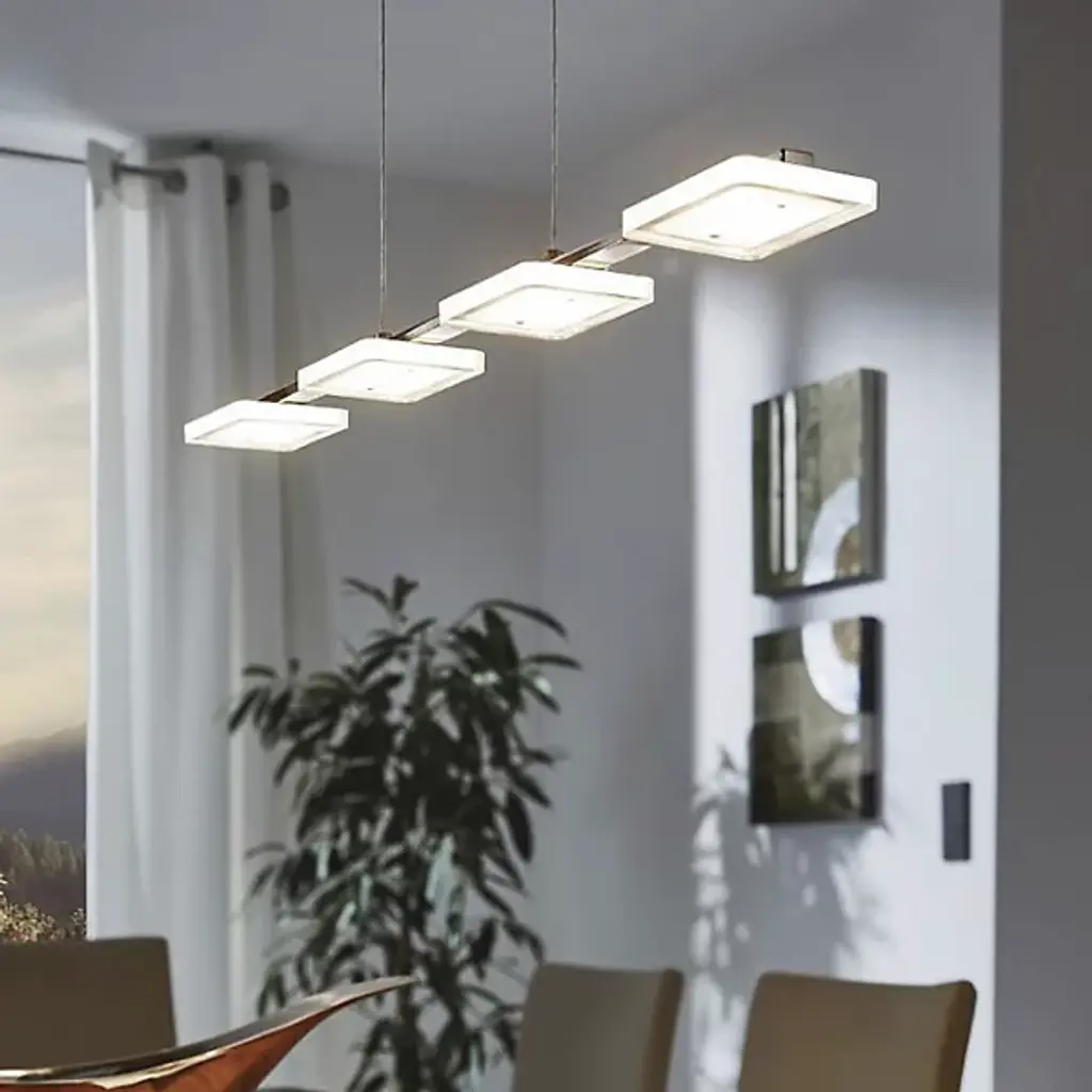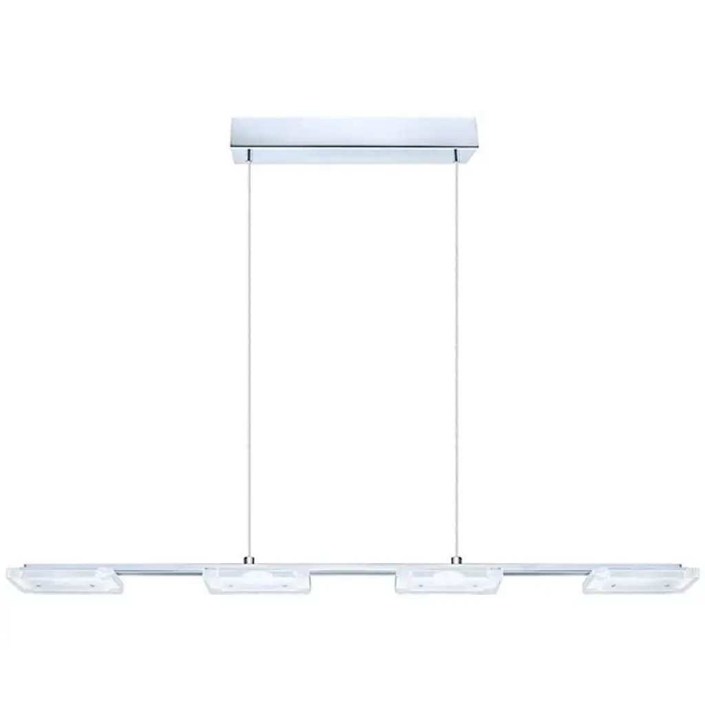Add a touch of elegance to your space with Eglo's Cartama LED Linear Suspension. This transitional style fixture is not only beautiful but is also constructed from durable steel and acrylic. Designed with a linear shape and clear and satin square acrylic shades, it seamlessly fits into your kitchen, dining room, or office. The integrated LED light source illuminates your space with a pleasant, warm glow, making it perfect as a kitchen island pendant or a 4 LT Pendant. The Cartama LED Pendant is a must-have for every fashion-forward interior decorator.