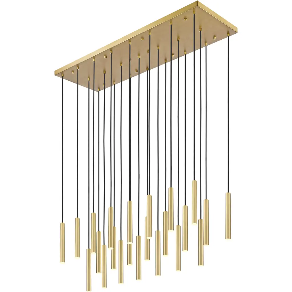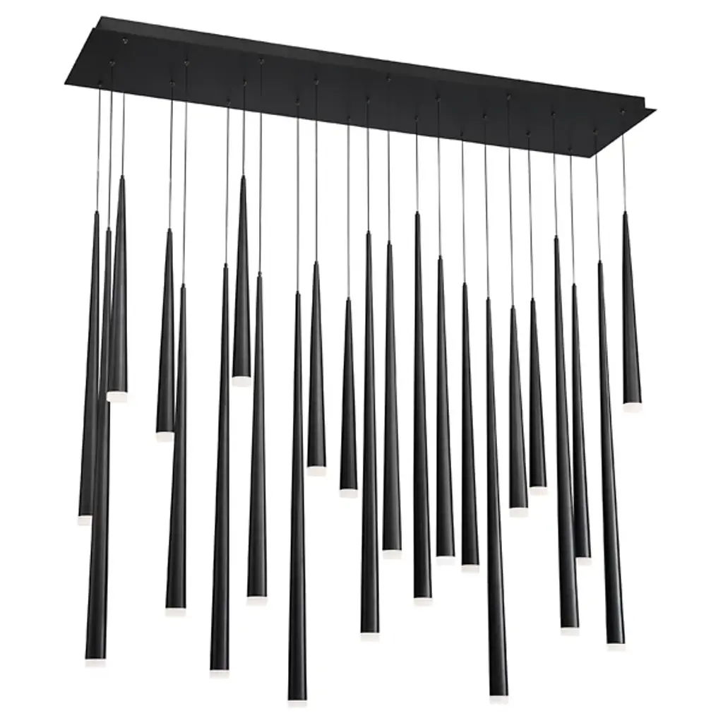 Decorate your favorite space with the soothing, minimalist form of the Cascade Etched Glass LED Multi-Light Linear Suspension from Modern Forms. An unassuming ceiling mount extends several thin wires that each uphold a slim and shining metal pendant. The pendants rest at various heights for added visual appeal and widen at the base, ending with an etched glass cap that contains an integrated, energy-efficient LED. Creating a clean image in the room, the LEDs further enhance the appeal of this piece by spreading a wide and even layer of illumination that enhances the space and unites form with function.