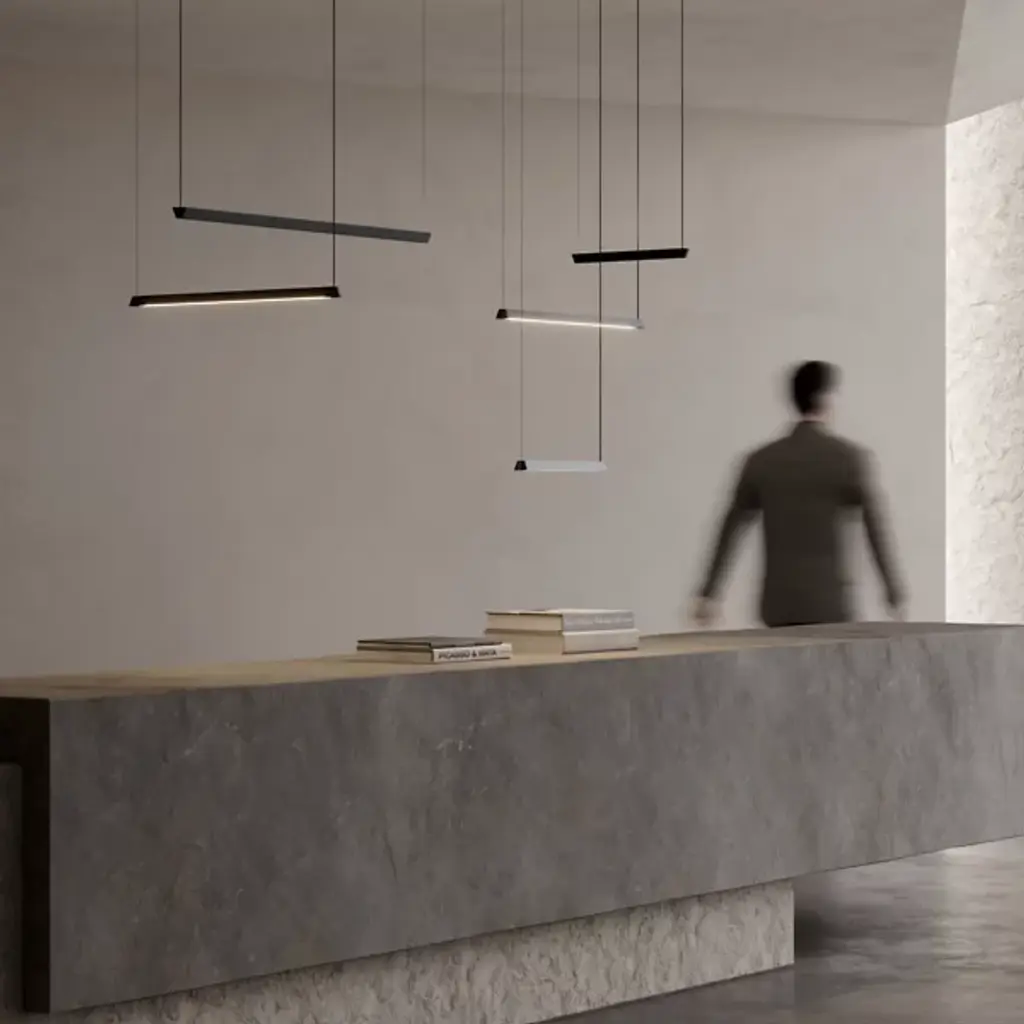 The Circus LED Linear Suspension from tossB features a subtly elegant design ideal for contemporary spaces. With its small anodized aluminum body and high-quality illumination, this linear suspension works well in both private interiors and public spaces. Aerial mobiles combine to offer a light and strong impact without sacrificing functionality. Its soft lines and curves blend a range of fitted pieces, creating an opportunity for the modularity of the mobiles.