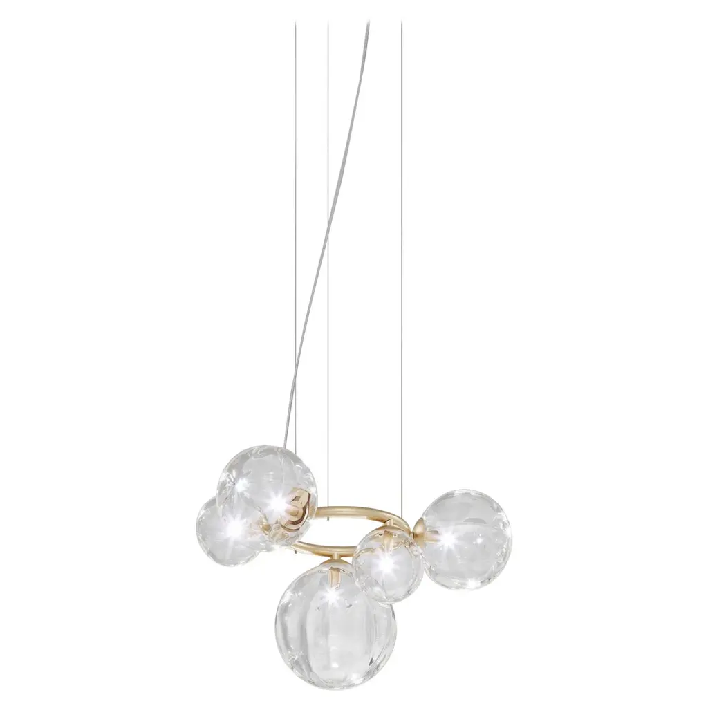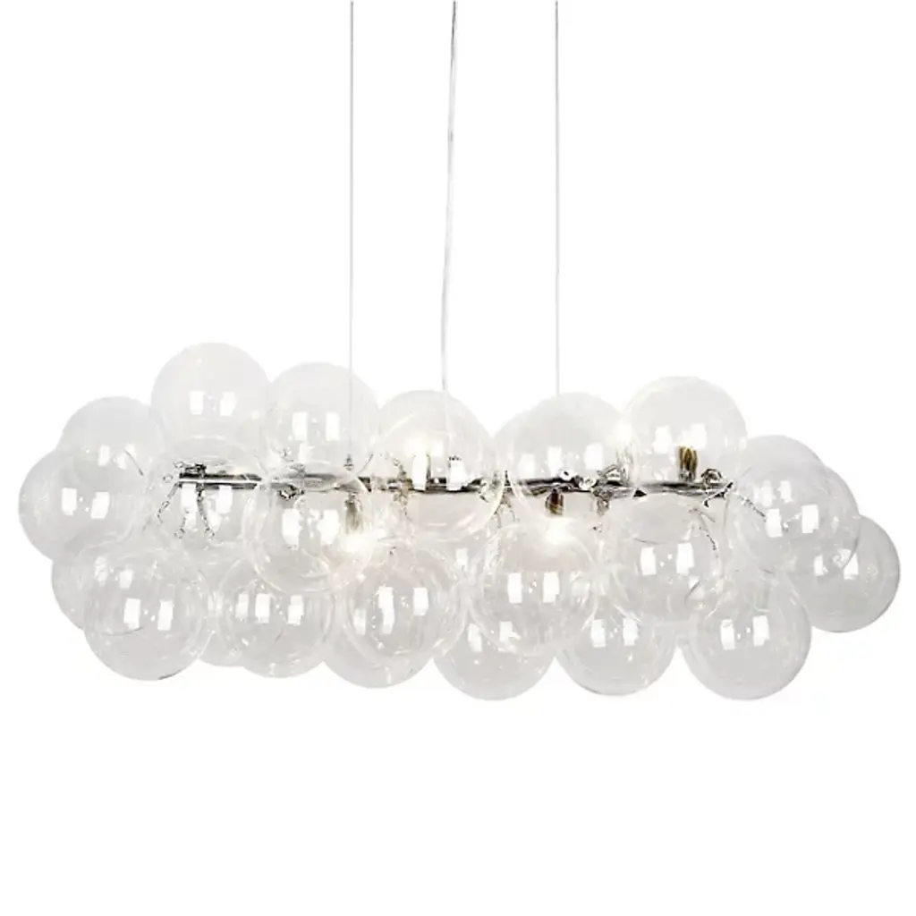The Comet Linear Suspension by Dainolite is a contemporary collection of clear glass orbs that lend a charming touch to their environment. Gathered close together along the length of a sleek horizontal rod, these spheres filter the illumination from an evenly spaced set of lights nestled within them. Simply suspended, this linear piece has an airy and cool quality as it brightens surroundings and fills them with a playful and organic silhouette.