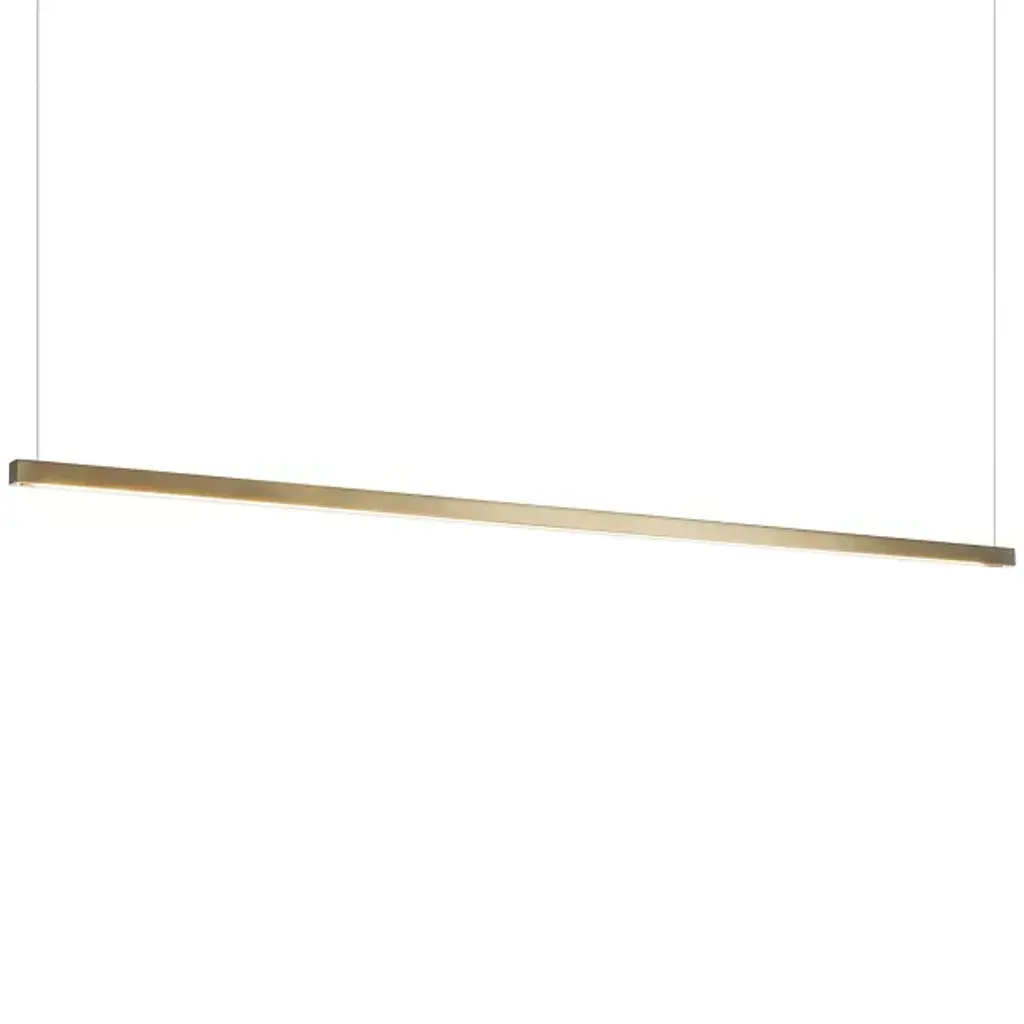 The Cosimo LED Linear Suspension Light from Huxe is a modern piece purely focused on seamless, uniform lighting. From a rectangular canopy, aircraft cable suspends the construction and powers it while producing sleek vertical accents. A steel housing gently bends from one side to another in an elegant V-shape. Two strips of frosted acrylic follow the contour of the housing, creating an uninterrupted transition. A strand of LEDs inside each diffuser beam a linear glow ideal over a dining table or kitchen island.