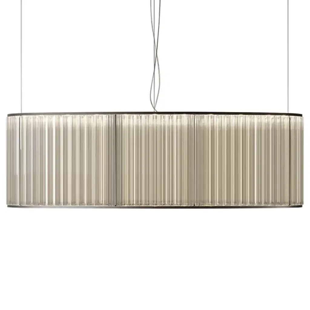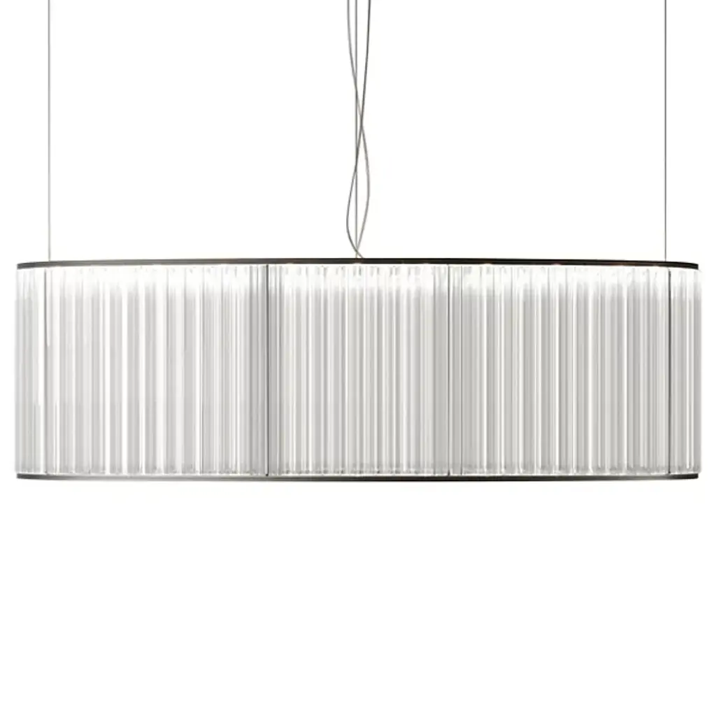 The Crown Elliptical LED Linear Suspension from Venicem is a marriage of a marriage of contemporary aesthetics and Italian artistry. It is defined by its elliptical shape and is composed of durable nickel. Made in Italy, Crown brings brilliance and a regal sensibility to your décor. Gorgeous Murano glass emits integrated LED light throughout your living space. When paired with a TRIAC dimmer, you can adjust the ambiance to your liking.