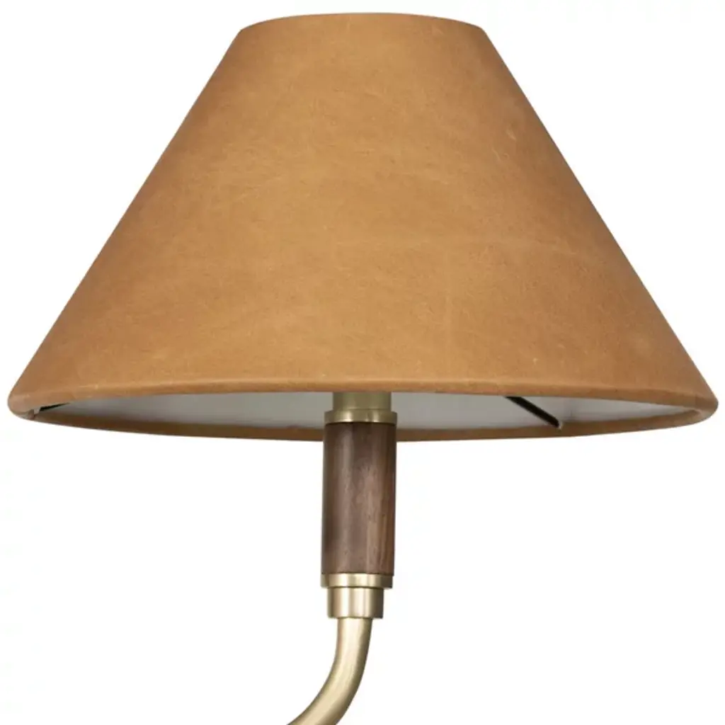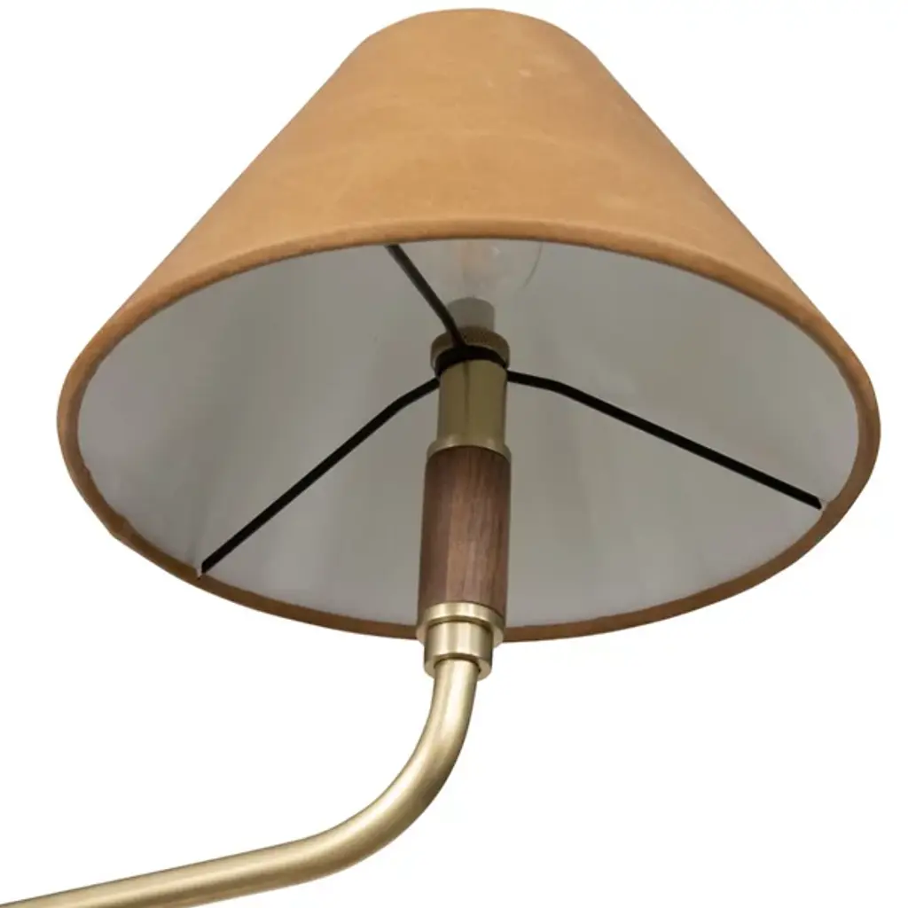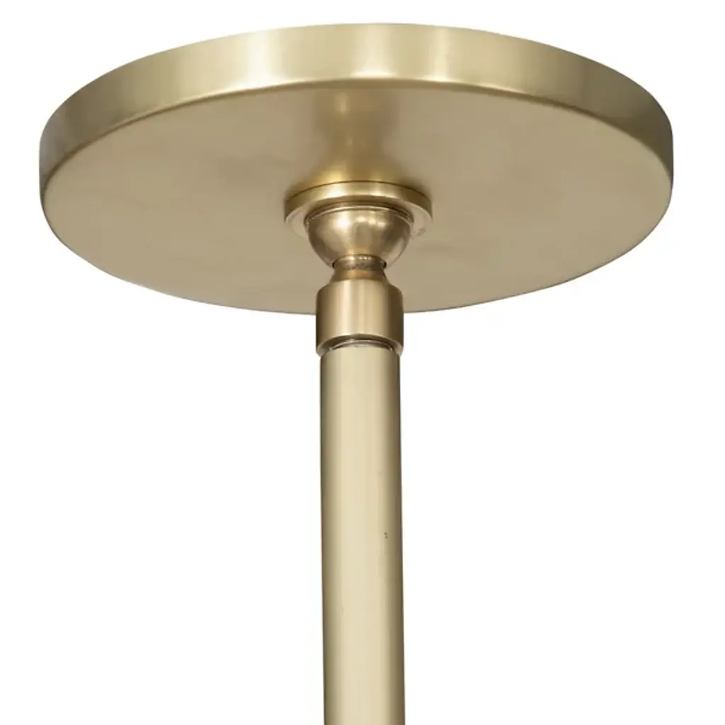 A modern mix of materials creates the midcentury-inspired Cullen Linear Suspension by Four Hands. This light fixture features double pendants. Elegant shades are covered with 100% top-grain leather and topped with a walnut finial. Aged-brass detailing completes the look. With 2 LEDs per single fixture, this furnishment is well-suited for placement above a long dining table.