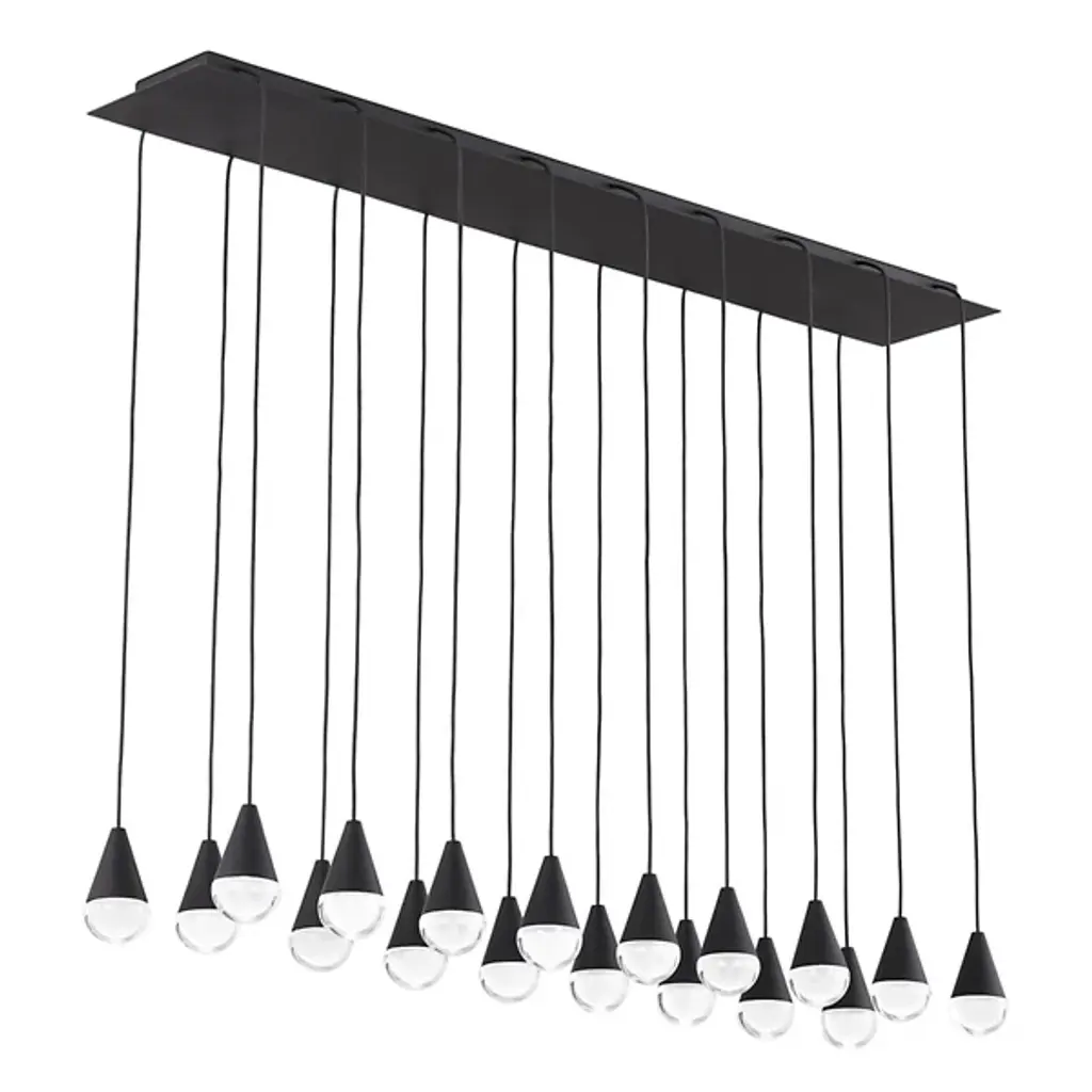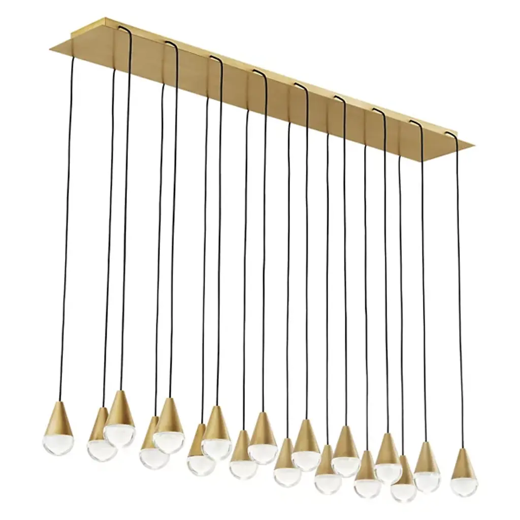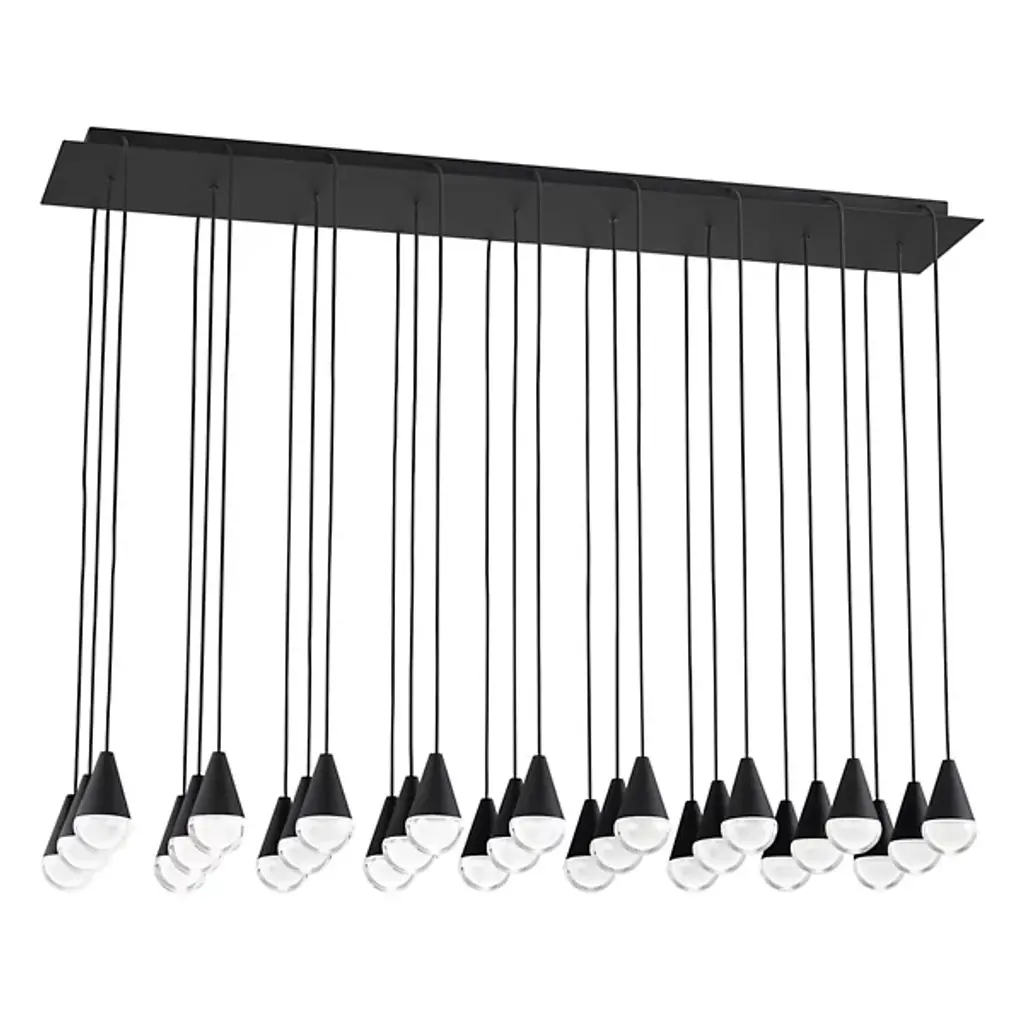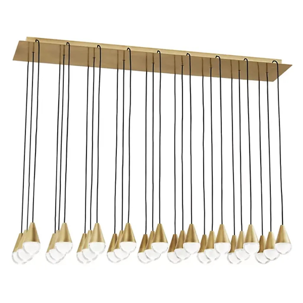 The Cupola Linear Suspension from Visual Comfort Modern is designed by Sean Lavin. This luminaire boasts a plethora of conically shaped metal frames that gracefully house exquisite crystal globes. Illuminated by LED technology, these crystal globes radiate with a brilliant and captivating glow. The dimmable feature, usable in tandem with a separately sold ELV dimmer, grants you precise control over the brightness, allowing you to create a desirable ambiance tailored to your event.