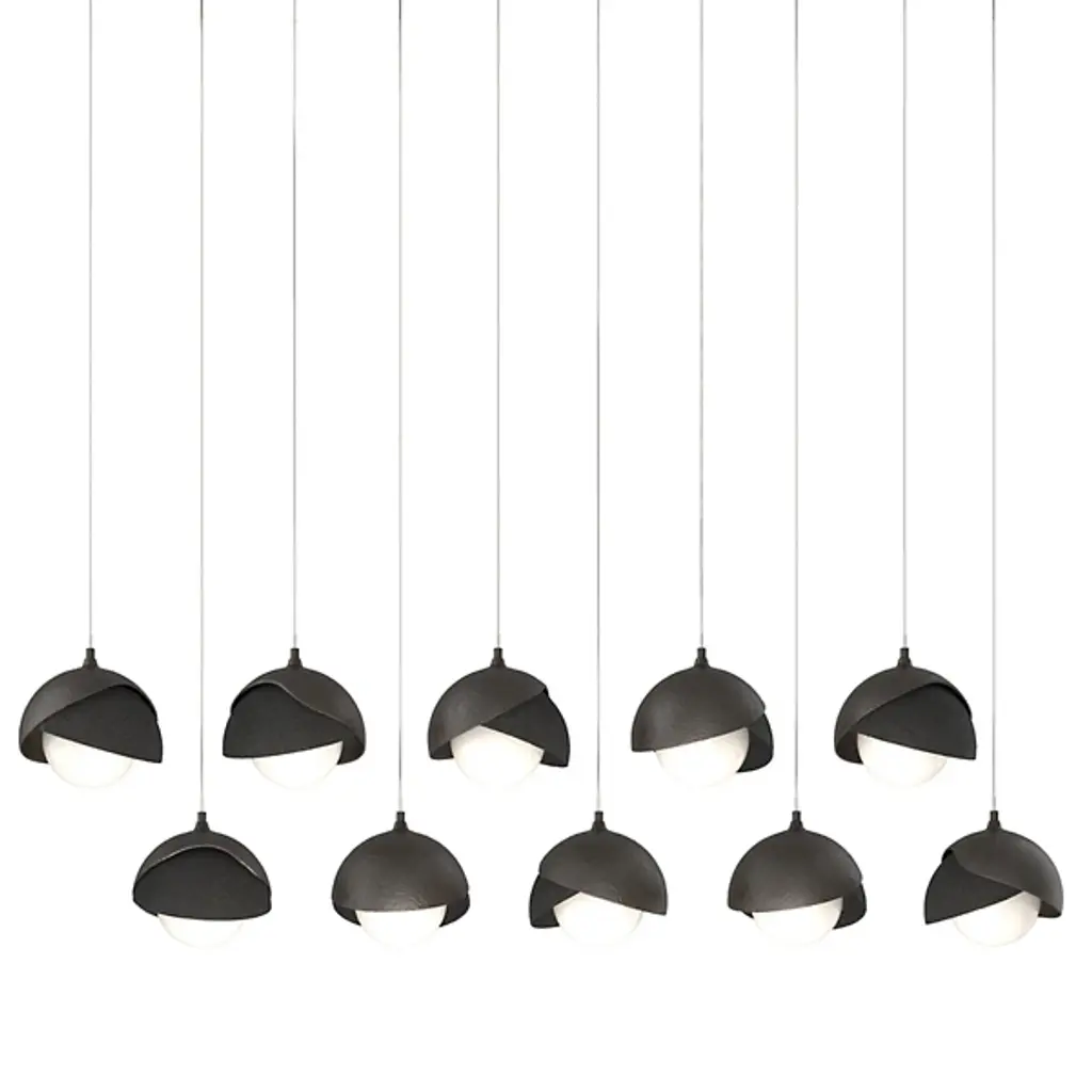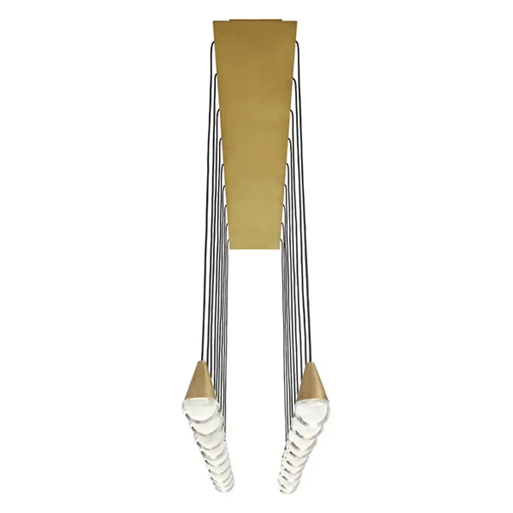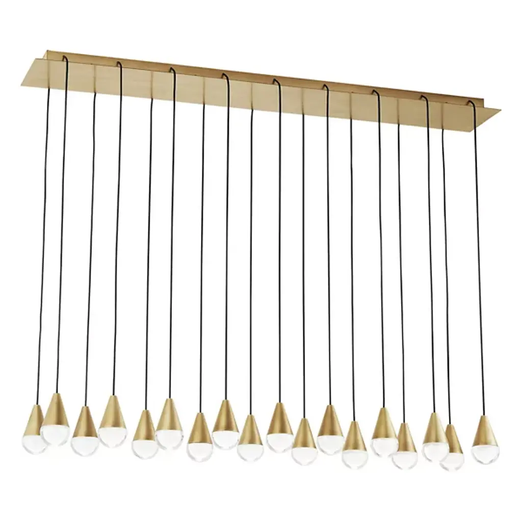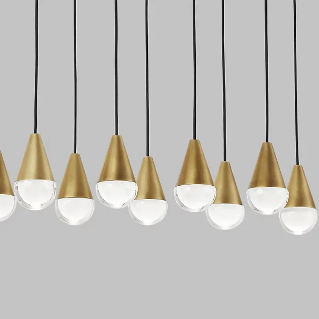 The Cupola Linear Suspension from Visual Comfort Modern is designed by Sean Lavin. This luminaire boasts a plethora of conically shaped metal frames that gracefully house exquisite crystal globes. Illuminated by LED technology, these crystal globes radiate with a brilliant and captivating glow. The dimmable feature, usable in tandem with a separately sold ELV dimmer, grants you precise control over the brightness, allowing you to create a desirable ambiance tailored to your event.