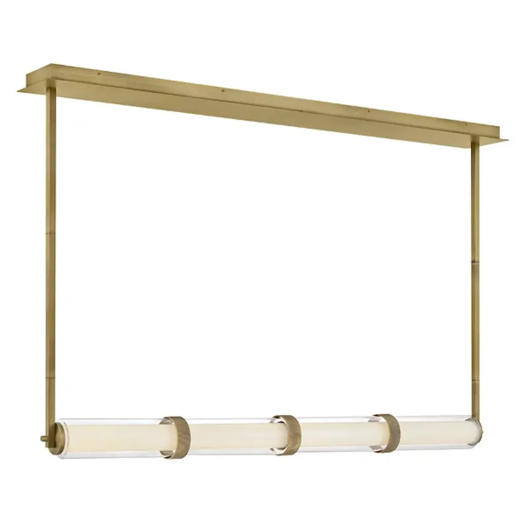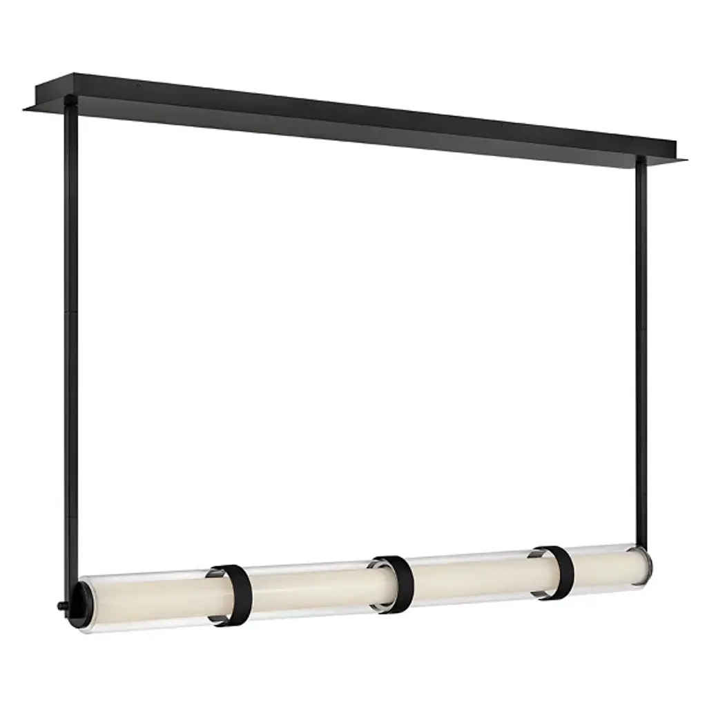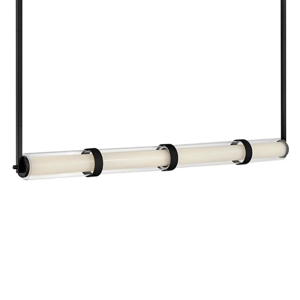 The Cy LED Linear Suspension from Fredrick Ramond emanates understated glamour through its sleek, modern styling. The elongated design showcases clear glass enveloping etched opal glass, creating captivating refractions illuminated by dimmable integrated LEDs. The fixture is punctuated by a full canopy, square stems, and decorative ribbing, adding a touch of sophistication. Cy represents a perfect blend of contemporary aesthetics and functional design, providing a chic lighting solution that effortlessly elevates your space with its captivating and modern allure.