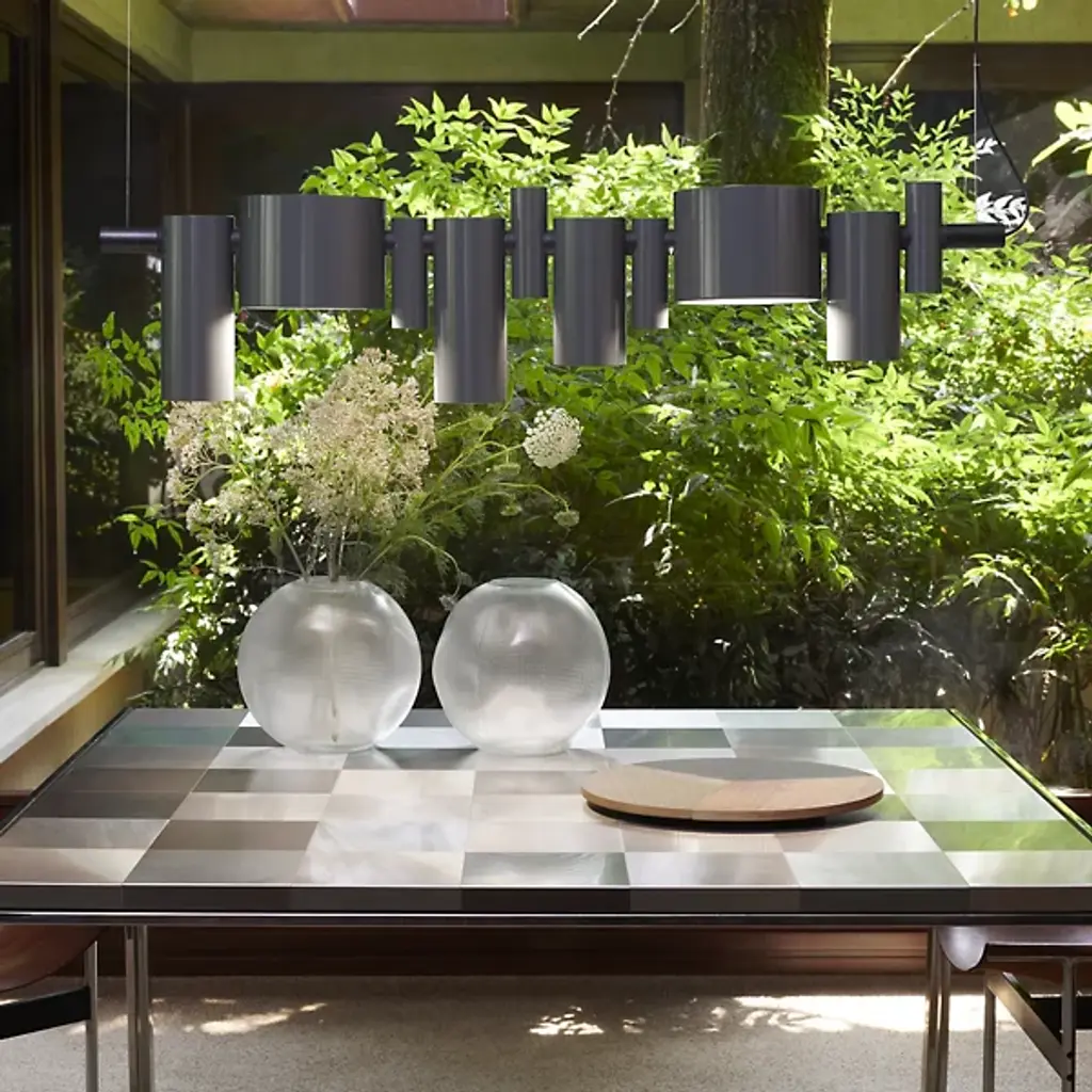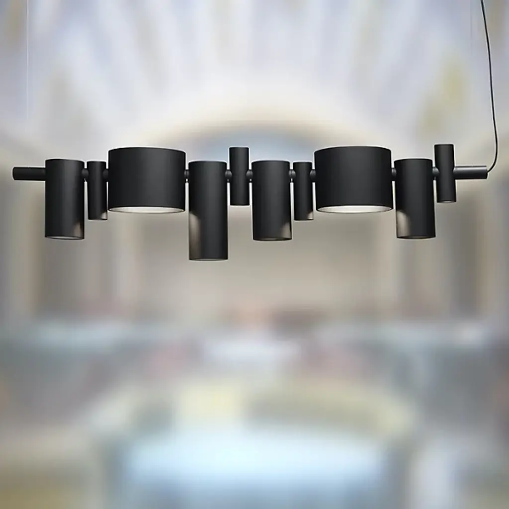 Get moving with the Dancing Queen LED Linear Suspension from Oluce. This contemporary lighting solution is designed by Victor Vasilev. Beautiful shades of glass are enveloped by refined, drum-shaped frameworks of durable metal. The cylinders can be positioned in various orientations, offering a precise, directed lighting experience. A streamlined body provides support as a ceiling canopy keeps the suspension in midair, allowing the light to emanate from overhead. Dancing Queen gives your living space dynamism and a contemporary, sculptural look.