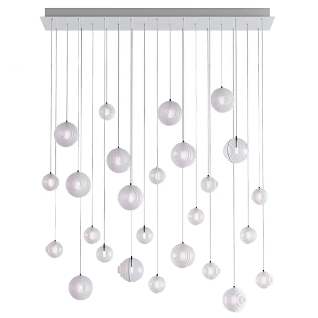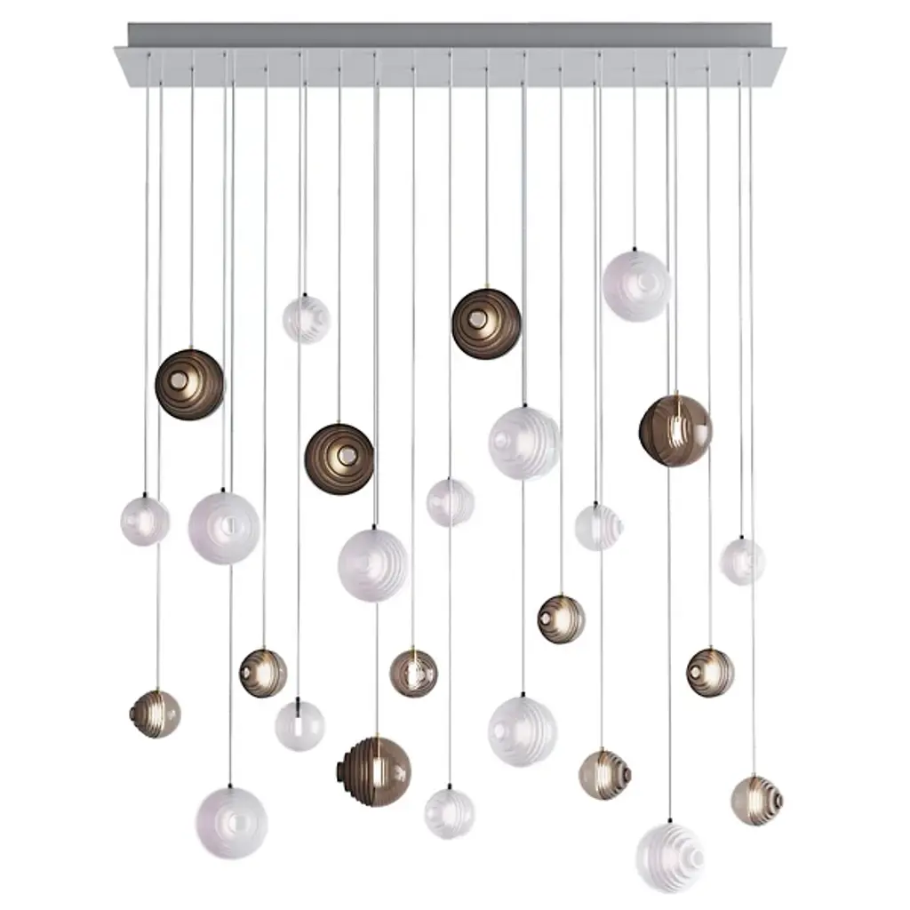 The Dark & Bright Star 26 Linear Suspension from Bomma embodies the essence of distant stars, seamlessly blending refined design and craftsmanship into a striking centerpiece. A central light source shines through mouth-blown glass, illuminating a meticulously cut crystal star that radiates brilliance. The linear suspension artfully contrasts light and darkness, combining the organic beauty of traditional handcrafting with the glossy sheen and smooth matte finish of crystal. This celestial-inspired fixture adds elegance and a touch of cosmic charm to any room.