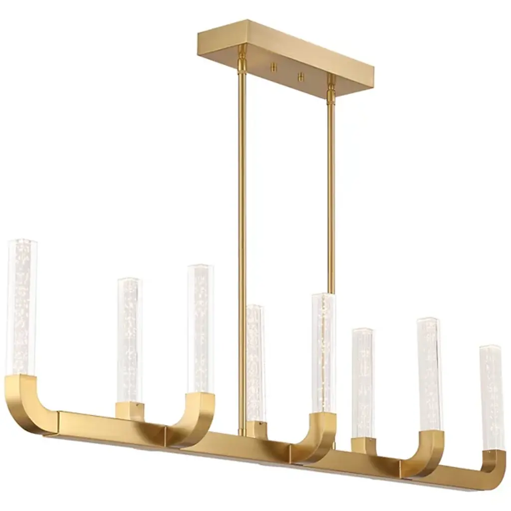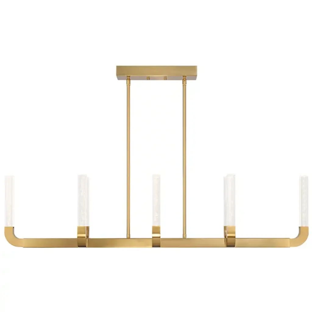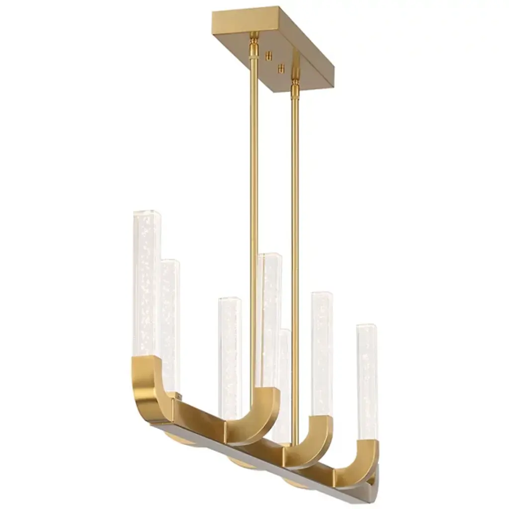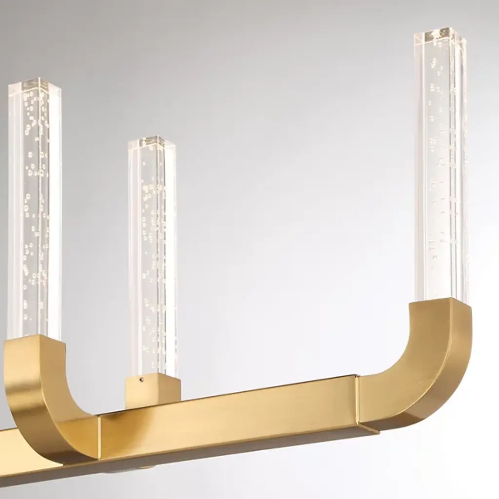 The Del Mar LED Linear Suspension from Savoy House, designed by the acclaimed interior designer and TV host Breegan Jane, boasts a sleek and slender structure that showcases her knack for adding dramatic flair without overpowering a space. The LED light radiates through a clear-seeded acrylic baton, producing an eye-catching and captivating texture. Finished in Warm Brass, this linear suspension perfectly combines modern elegance with functionality, making it a stunning centerpiece for any interior décor.