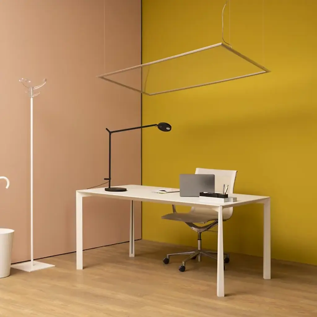 Time the snap of your finger with the flip of the switch to watch your guest’s jaws drop when clear material transforms into radiant light with the Discovery Space Rectangular LED Linear Suspension from Artemide. It’s a technical marvel and winner of the prestigious Compasso d’Oro Award. What can be called magic is pure science thought up by aeronautical/aerospace engineer turned designer Ernesto Gismondi. The piece changes the perspective of a room, especially as it allows for horizontal or vertical hanging. It draws a sleek metal shape in the air with a clear interior. Optical fibers run through the clear panel; when LED light shines through them, they reveal themselves as a bright, cohesive panel. The beautiful picture of light surrounds a space with a clean, radiant aura.