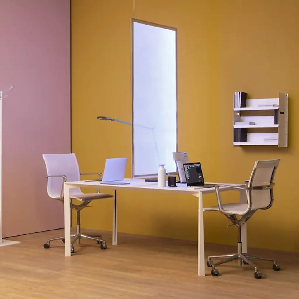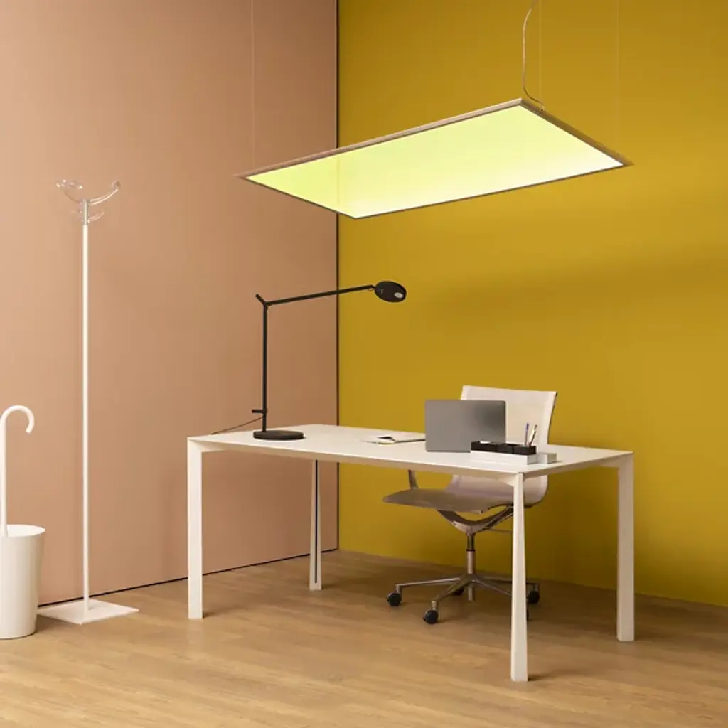 Time the snap of your finger with the flip of the switch to watch your guest’s jaws drop when clear material transforms into radiant light with the Discovery Space Rectangular LED Linear Suspension from Artemide. It’s a technical marvel and winner of the prestigious Compasso d’Oro Award. What can be called magic is pure science thought up by aeronautical/aerospace engineer turned designer Ernesto Gismondi. The piece changes the perspective of a room, especially as it allows for horizontal or vertical hanging. It draws a sleek metal shape in the air with a clear interior. Optical fibers run through the clear panel; when LED light shines through them, they reveal themselves as a bright, cohesive panel. The beautiful picture of light surrounds a space with a clean, radiant aura.