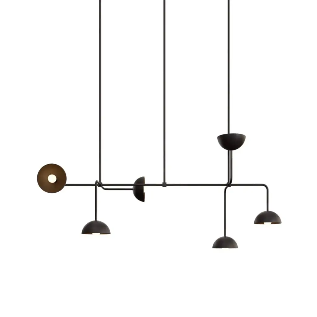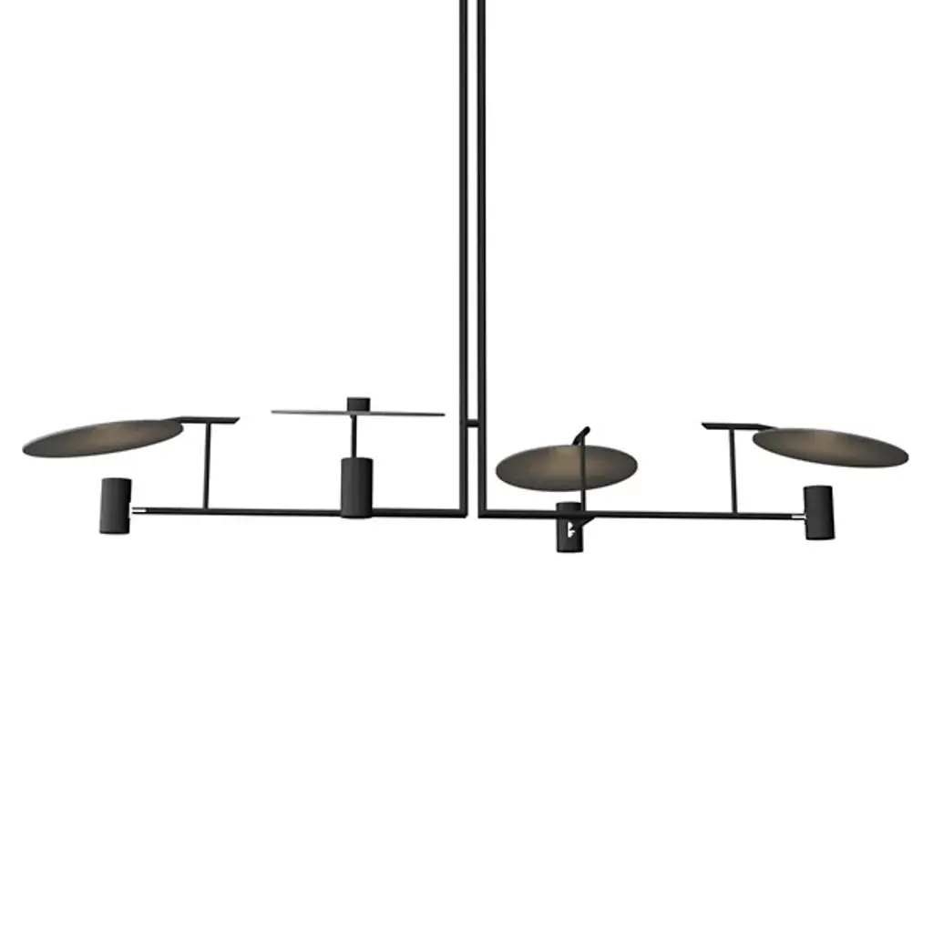 Illuminate your studio with the Dot Linear Suspension by Accord Lighting. This intricately constructed, wooden fixture hangs from your ceiling by connection to a round ceiling canopy. A pair of slender rods split at right angles, providing points of attachment for multiple lights. These lights boast plate-like formations reminiscent of cymbals which splay radiant LED light throughout your living arrangement. Whether you are spending quality time with friends or finishing up a creative project, rest assured that this midair lighting solution will provide the visibility you need.