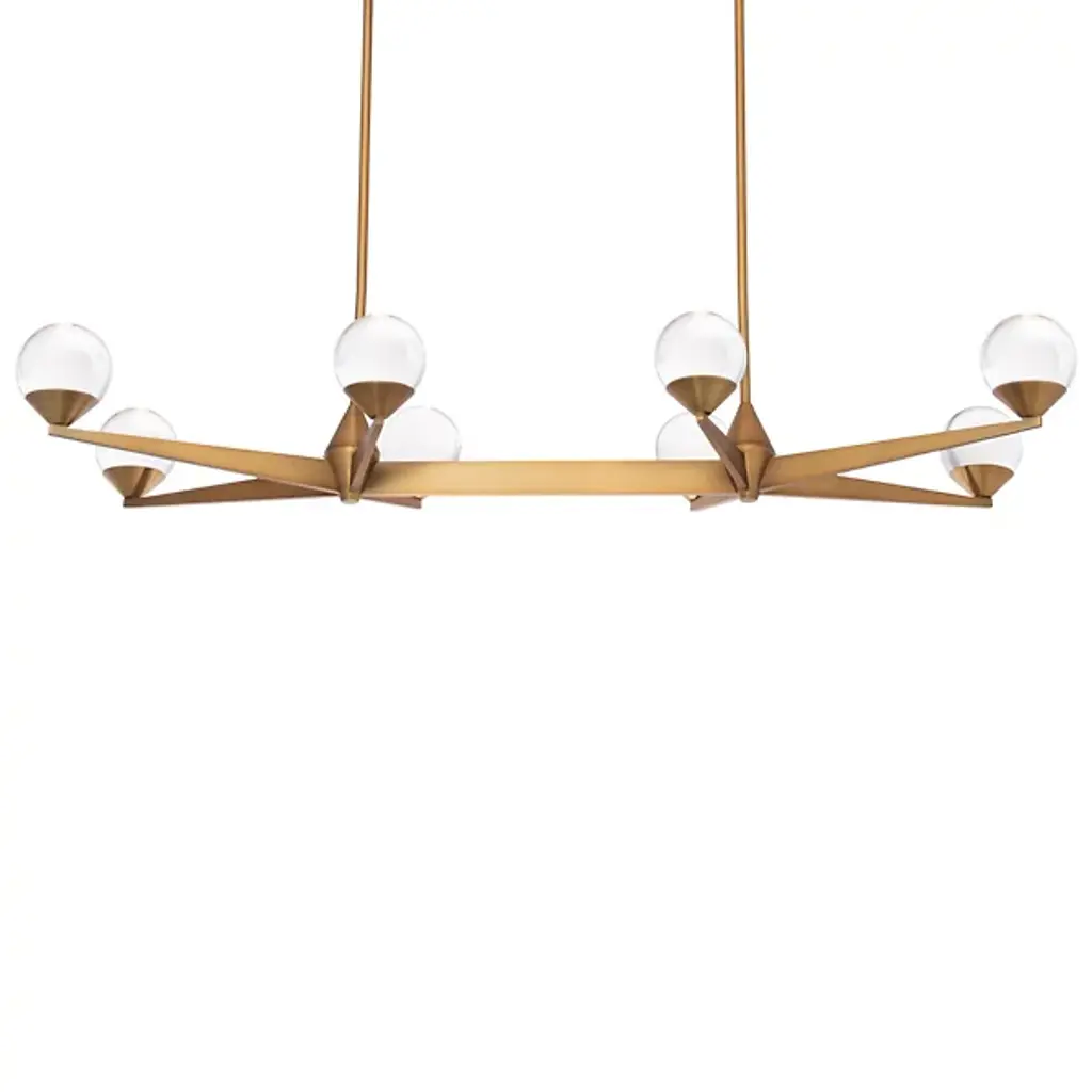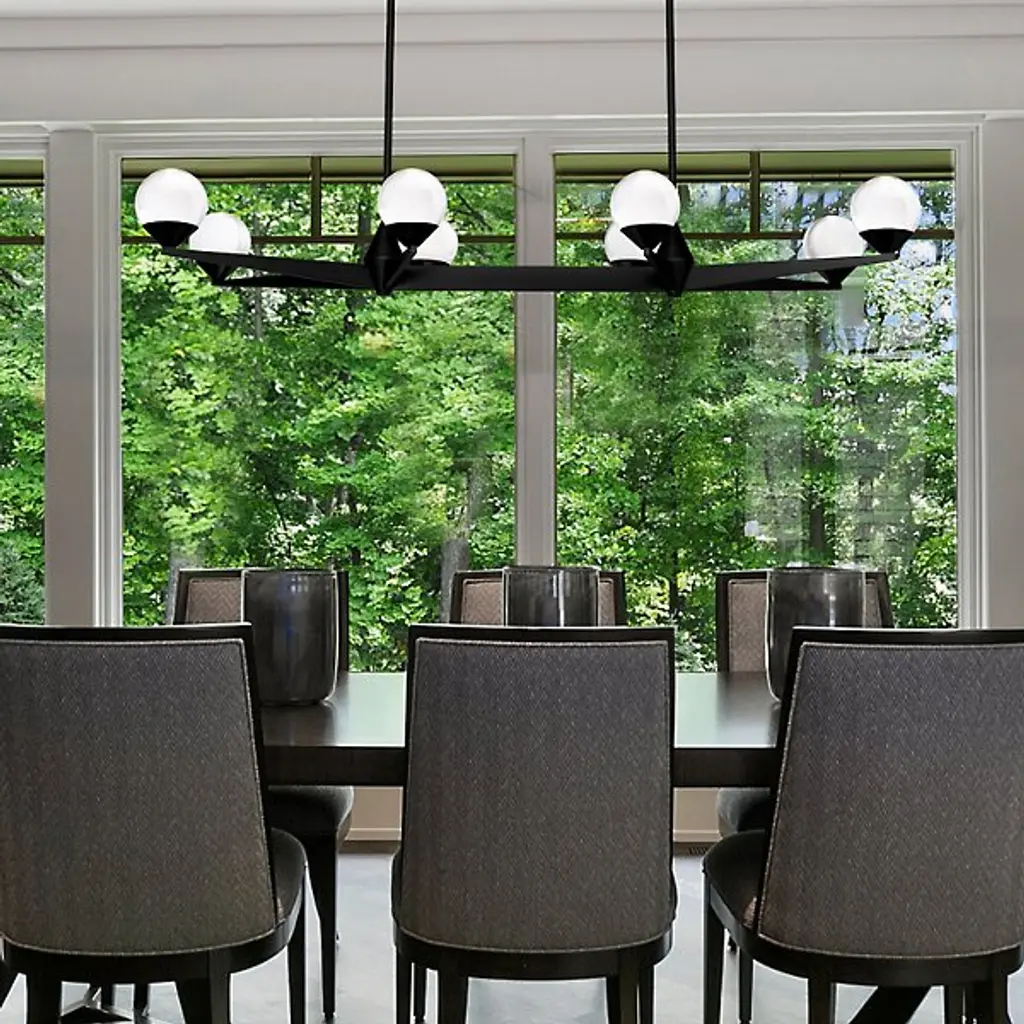 Add daring decadence to large, open interiors with the arresting angular stylings of the Double Bubble LED Linear Suspension from Modern Forms. An engaging salute to retro design, it puts current technology on full display, using a stepped rectangle canopy and twin downrods to support an expansive array of angular arms below. Each arm supports an upward-facing LED lamp blooming from a conical metal housing, the laser-etched glass contrasting its translucent texture with the clean metal around it, transmitting a generous glow of light evenly around the fixture.