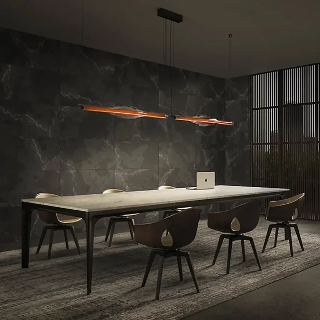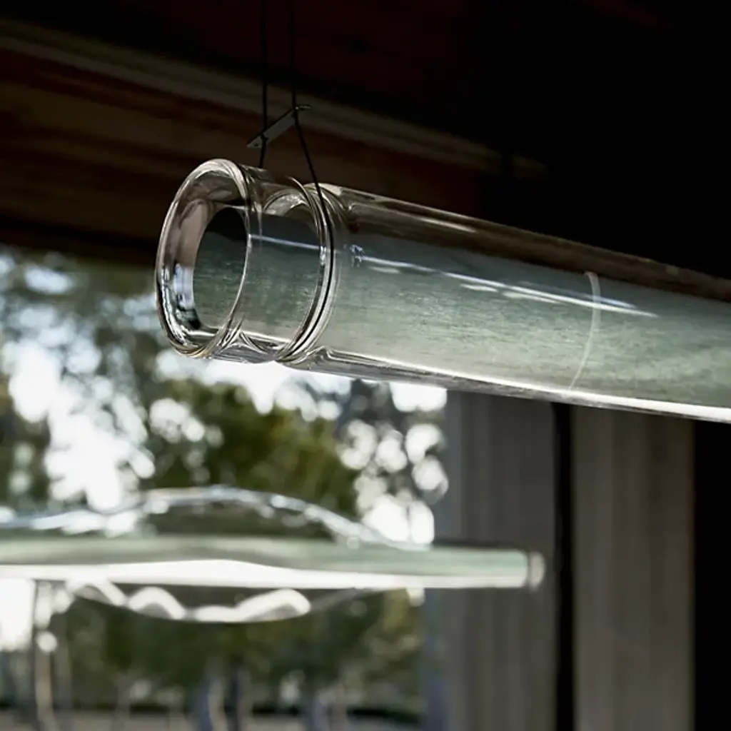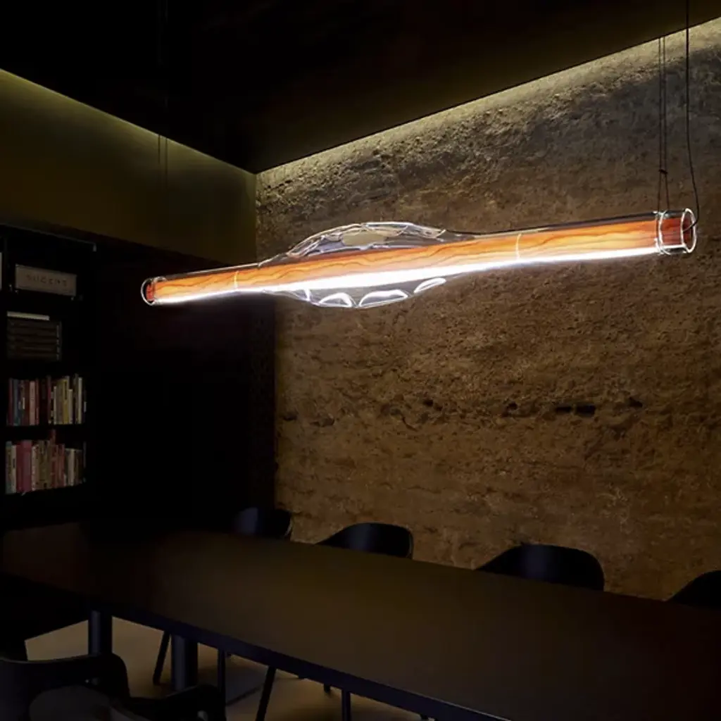 Interior Design's Best of Year Winner in the pendant lighting category, the Dune LED Linear Suspension by LZF is an expressive combination of beautiful wood veneer and handblown glass layered together. Created by the multidisciplinary, Madrid-based Mayice Studio, the silhouette of this piece reflects its name as a sculptural and textured glass shade surrounds a natural wood veneer shade. Focused on product design and architecture, this design studio has made a piece that transforms when illuminated, revealing the variations found within wooden veneers and playing with the way light travels along concave and convex glass forms.