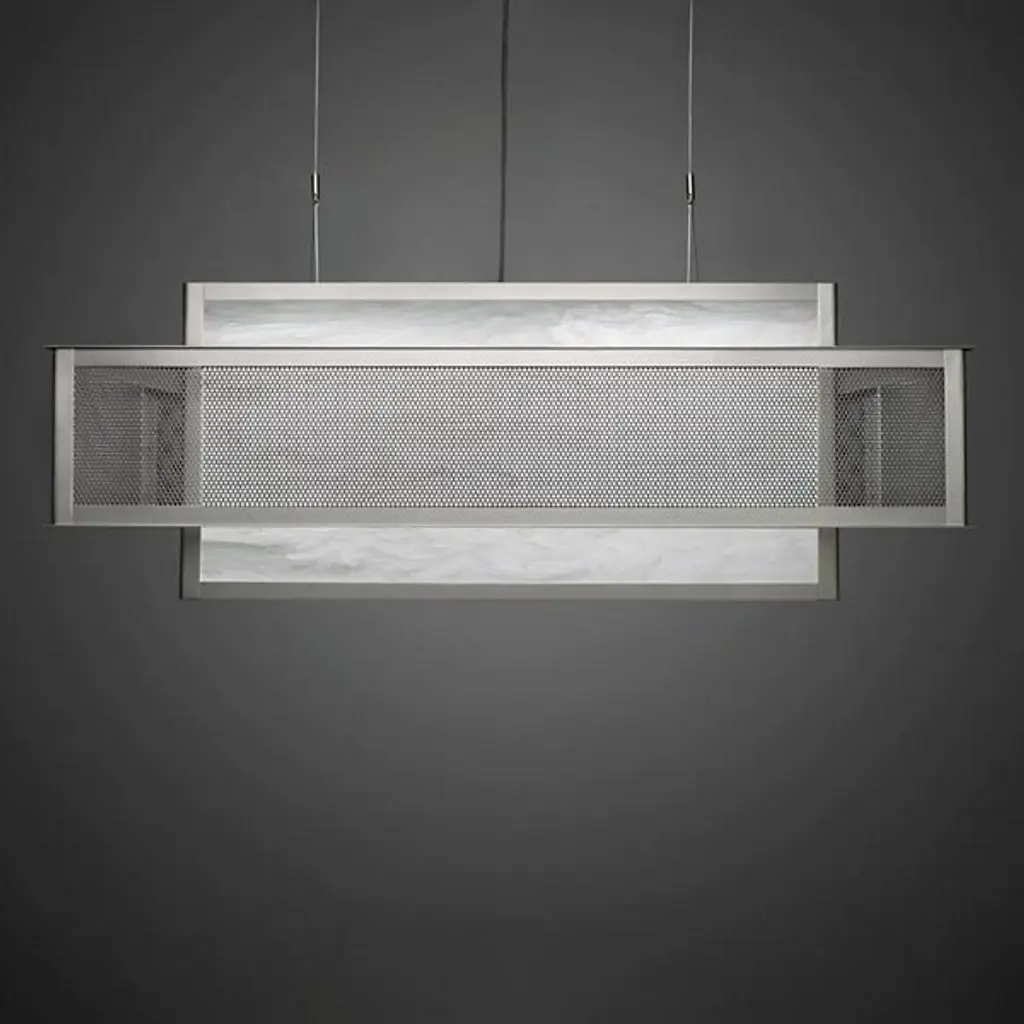 Bold and beautiful. The Duo Linear Suspension by Ultralights pairs a blend of materials and textures together to make an engaging statement. A rectangular cube supports beautiful diffusers on all sides, lending an even layer of illumination to surroundings as a perforated metal frame floats around it, creating a space for light to interact with playfully. With a clean and contemporary composition, this linear piece brightens spaces and brings a little geometrical flair to its environment.