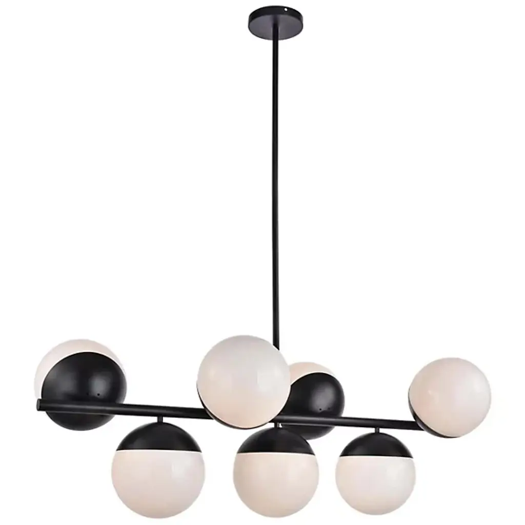 The Eclipse Linear Suspension from Elegant Lighting redefines spatial harmony through its innovative design. A horizontal bar serves as the foundation, from which six spheres emerge in a playful dance of light and shadow. Within each half-domed orb, exposed bulbs add an industrial touch. The pendant's linear form makes it ideal for illuminating long dining tables or kitchen islands, while its artistic composition elevates it beyond mere functionality. Its dimmable feature allows for precise atmosphere control, transforming spaces from vibrant to intimate with a simple adjustment.
