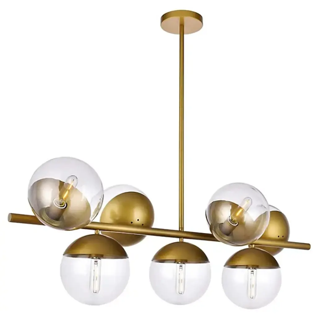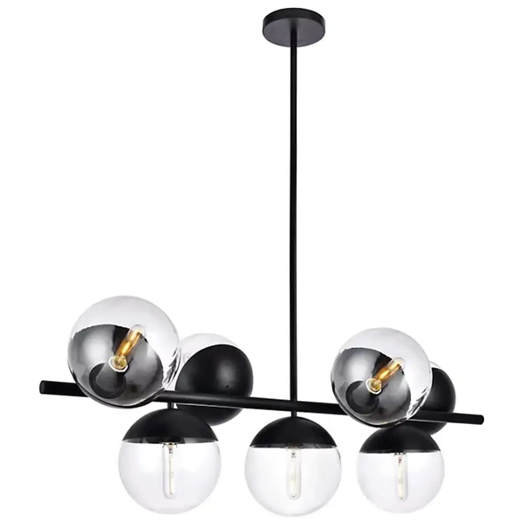The Eclipse Linear Suspension from Elegant Lighting redefines spatial harmony through its innovative design. A horizontal bar serves as the foundation, from which six spheres emerge in a playful dance of light and shadow. Within each half-domed orb, exposed bulbs add an industrial touch. The pendant's linear form makes it ideal for illuminating long dining tables or kitchen islands, while its artistic composition elevates it beyond mere functionality. Its dimmable feature allows for precise atmosphere control, transforming spaces from vibrant to intimate with a simple adjustment.