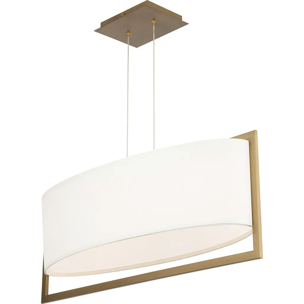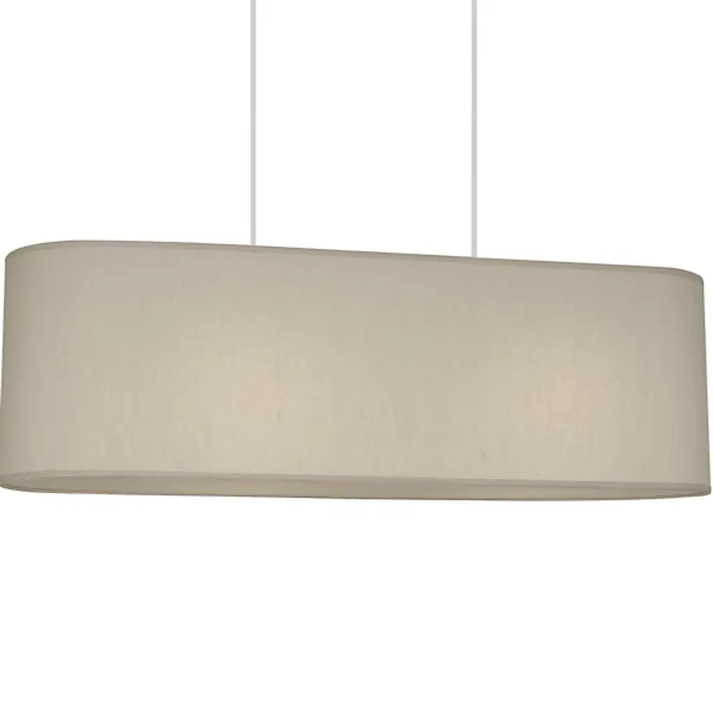 Grand, elegant, and encompassing like a stadium. The Elena Linear Suspension from Robert Abbey fills up one’s room with a cozy and spirited glow. The modern design speaks to a home’s streamlined décor. It spreads out beautifully across a kitchen island or dining table like a floating shape. The slender dual suspension creates this floating look. Wrapped over a slender oval framework, soft fabric conceals the lamping for minimal glare. The lamping’s light paints the fabric shade with golden hues while filtering out as a spacious glow.