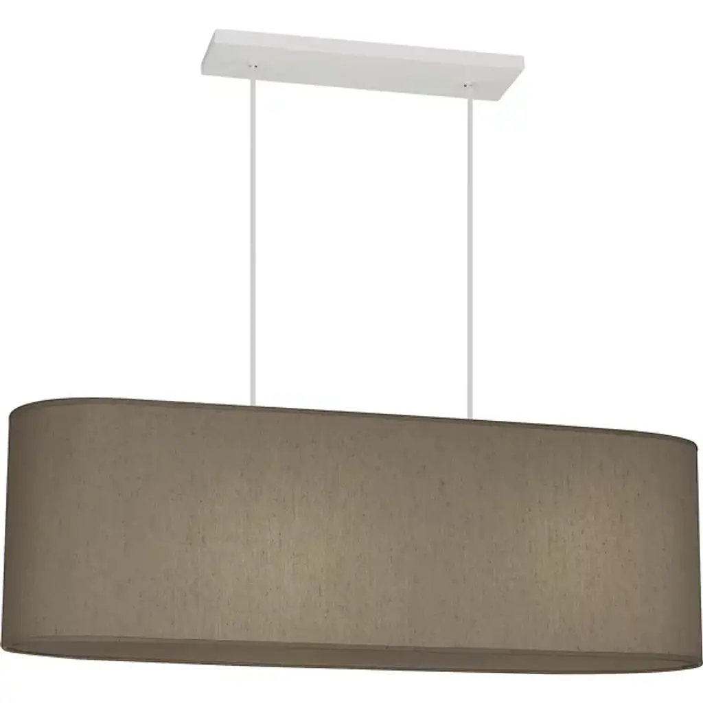 Grand, elegant, and encompassing like a stadium. The Elena Linear Suspension from Robert Abbey fills up one’s room with a cozy and spirited glow. The modern design speaks to a home’s streamlined décor. It spreads out beautifully across a kitchen island or dining table like a floating shape. The slender dual suspension creates this floating look. Wrapped over a slender oval framework, soft fabric conceals the lamping for minimal glare. The lamping’s light paints the fabric shade with golden hues while filtering out as a spacious glow.