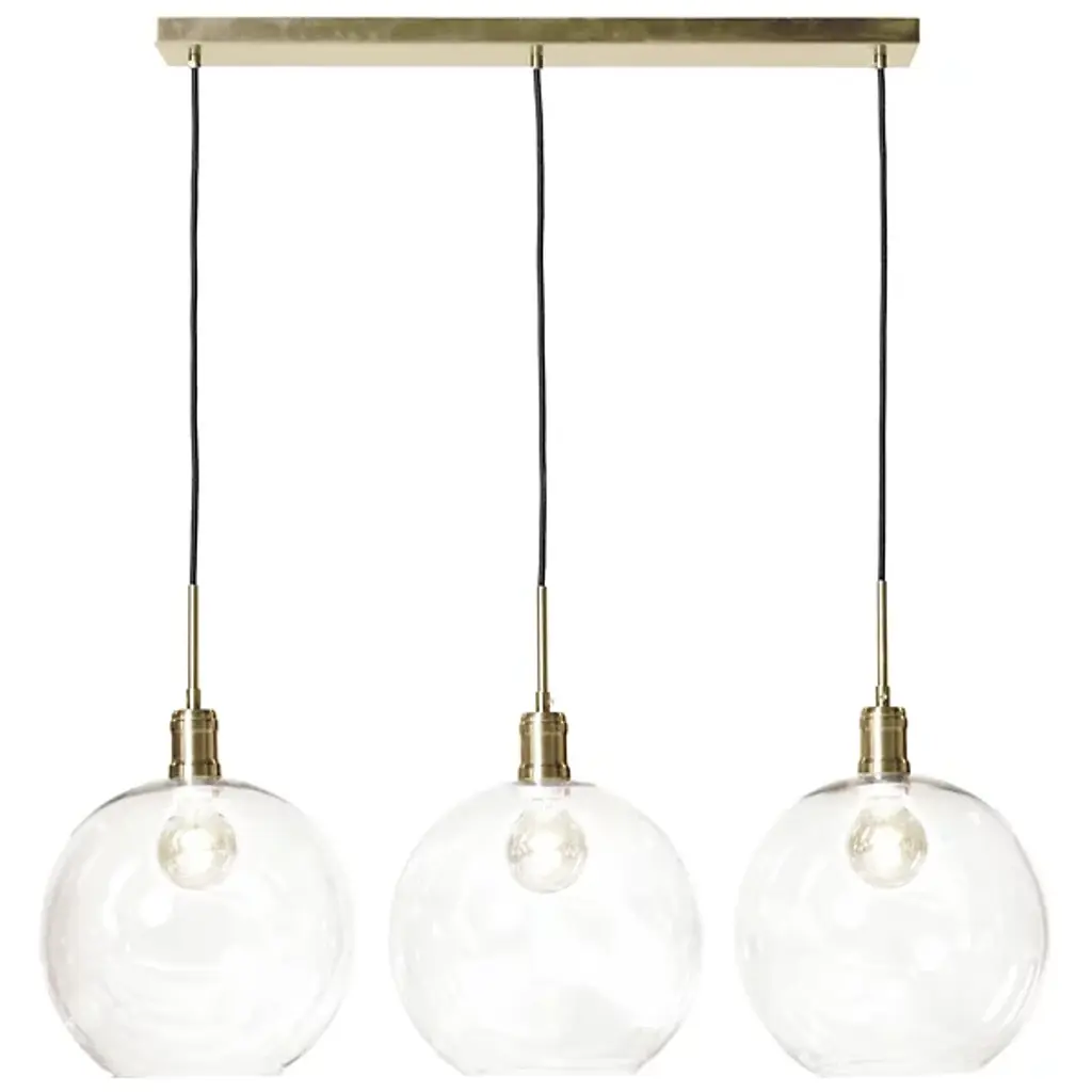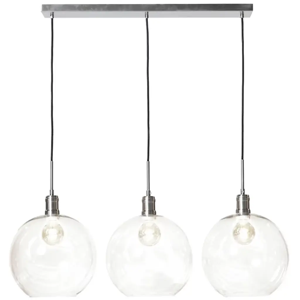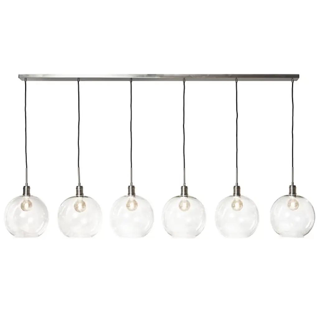 The Elio Linear Suspension by Alder & Ore brightens modern interiors with streamlined simplicity. It features several glass globes hanging in a line along a slim steel canopy, each one providing a glistening outline around its internal light source. To ensure a cohesive look, the shade holders/light sockets come in a coordinating metal finish. In an instant, this linear pendant provides all the light and refined style you need over a long, modern dining table or kitchen island.