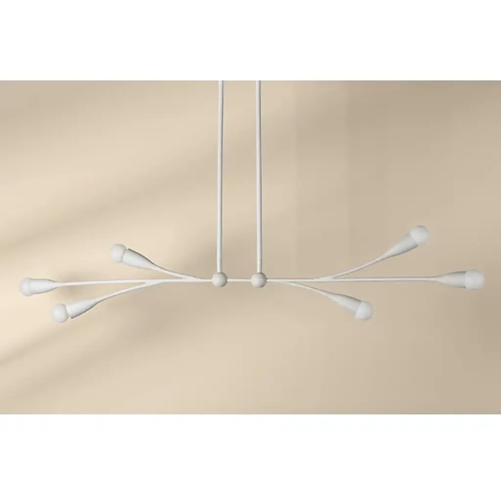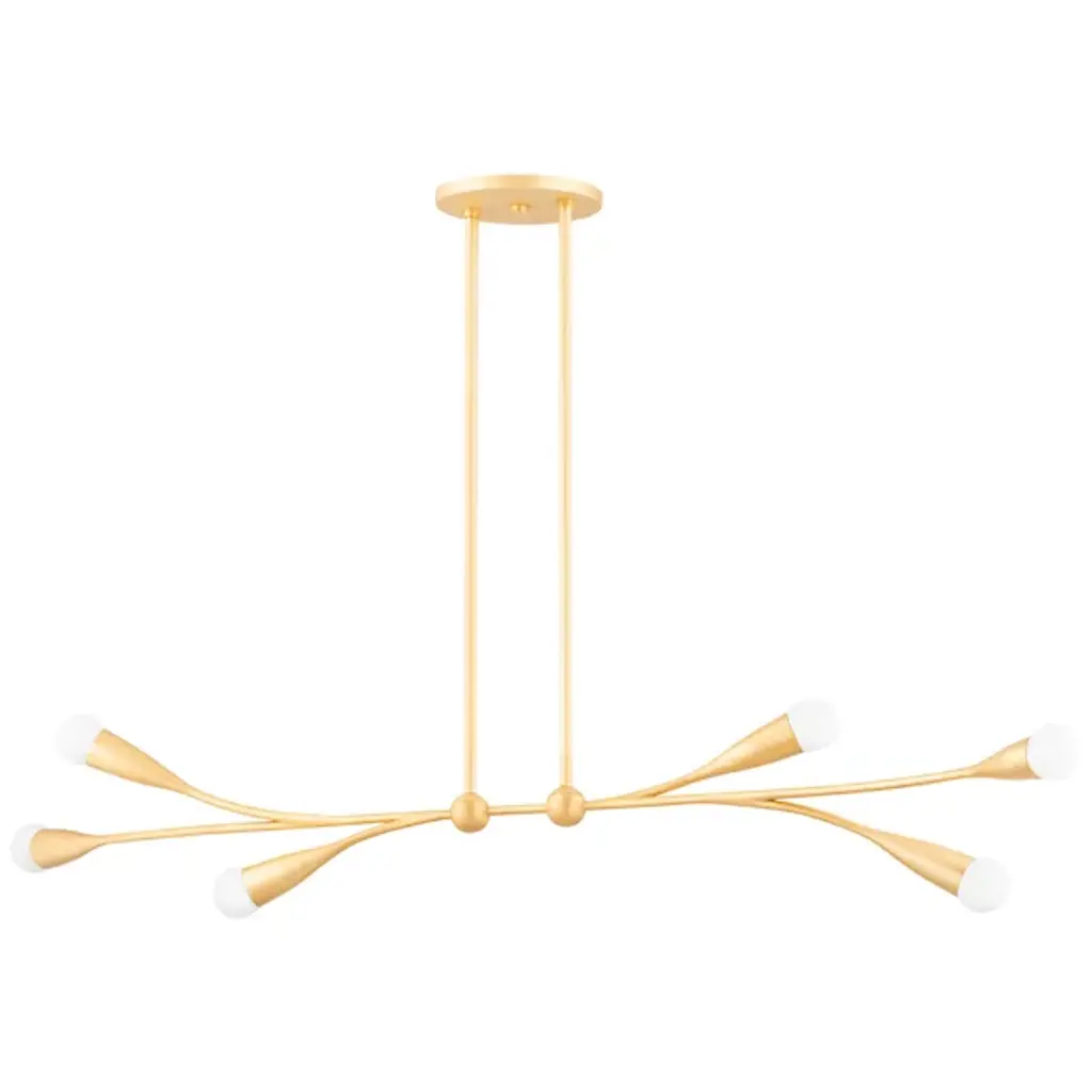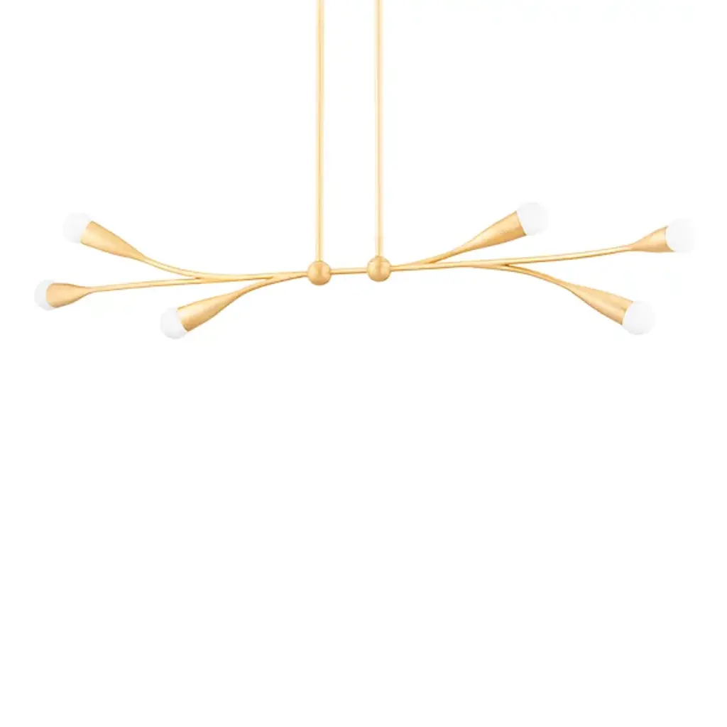 One can’t help but be frozen in awe of the cherry blossom-inspired design of the Elsa Linear Suspension from Mitzi – Hudson Valley Lighting. Designed by Eny Lee Parker, the suspension’s minimal, sculptural lines lend it to a naturally decorated modern or contemporary space. Recognized as symbols of rebirth, the cherry blossom’s fluid branches are represented here with wide-stretching arms. These arms taper at the end with bulbs to suggest a tree’s charming buds. The bulbs’ dots of lights spread out to give the dining or kitchen area an airy, compelling glow.