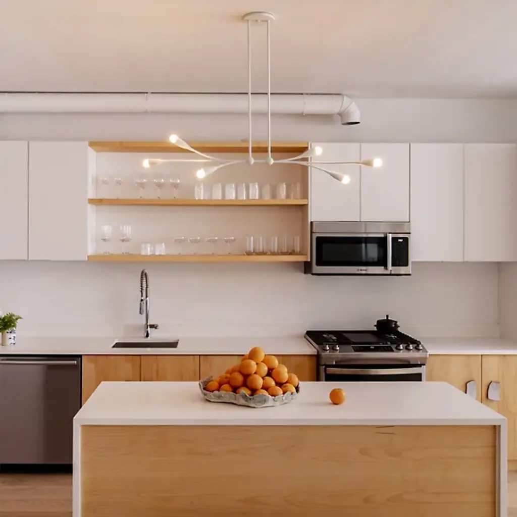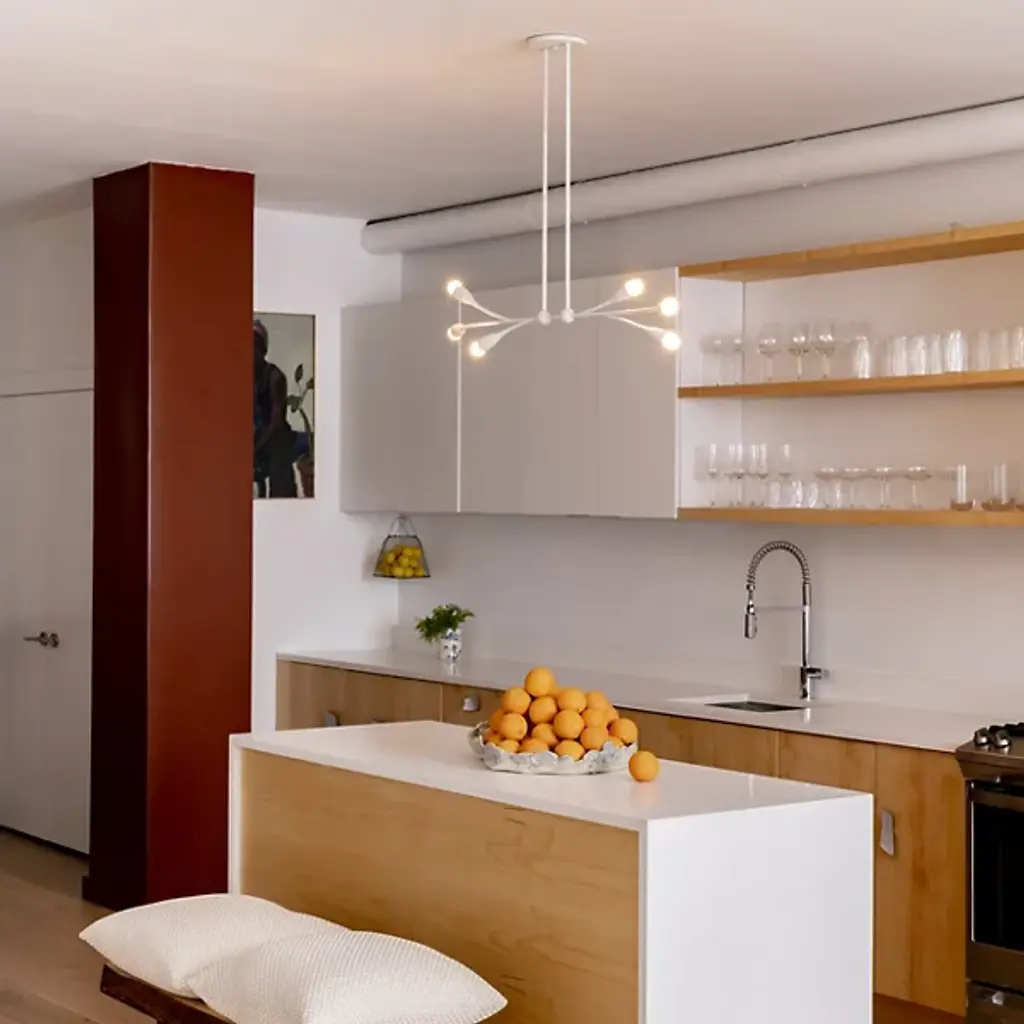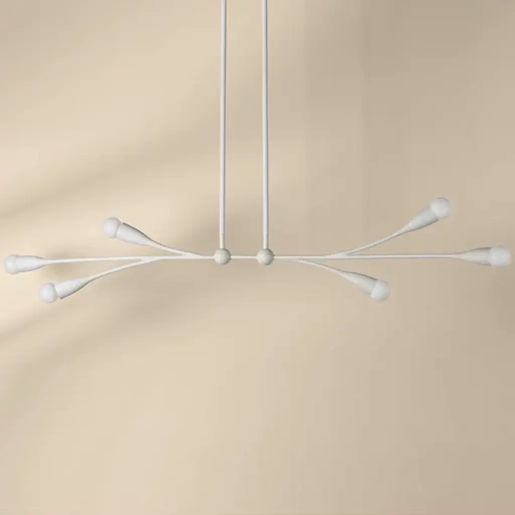 One can’t help but be frozen in awe of the cherry blossom-inspired design of the Elsa Linear Suspension from Mitzi – Hudson Valley Lighting. Designed by Eny Lee Parker, the suspension’s minimal, sculptural lines lend it to a naturally decorated modern or contemporary space. Recognized as symbols of rebirth, the cherry blossom’s fluid branches are represented here with wide-stretching arms. These arms taper at the end with bulbs to suggest a tree’s charming buds. The bulbs’ dots of lights spread out to give the dining or kitchen area an airy, compelling glow.
