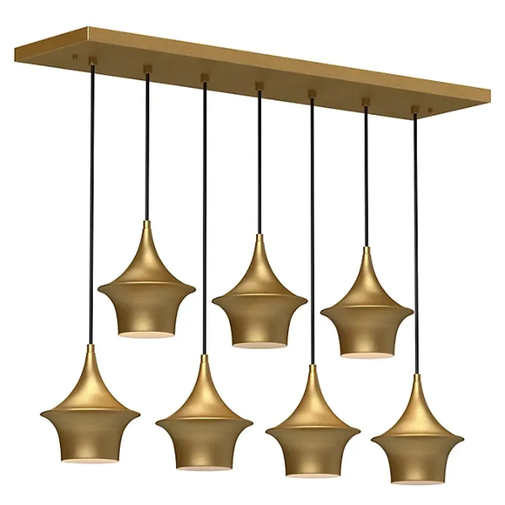 Ideal over a kitchen counter or large gathering space, the Emiko Linear Suspension from Alora Mood brings an intricate, elegant appeal to inside ceilings. Starting with a sleek and slender rectangular canopy, it sends down slim cables to small, strong lamps set into conical metal housings. Each housing narrows below the lamping’s lower sections, pouring out an inspired assembly of evenly spaced downlight that adds an authoritative ambiance.