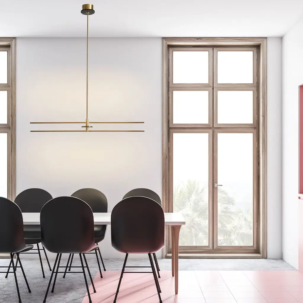 "Essential Stick" Suspension Lamp In Satin Brass
