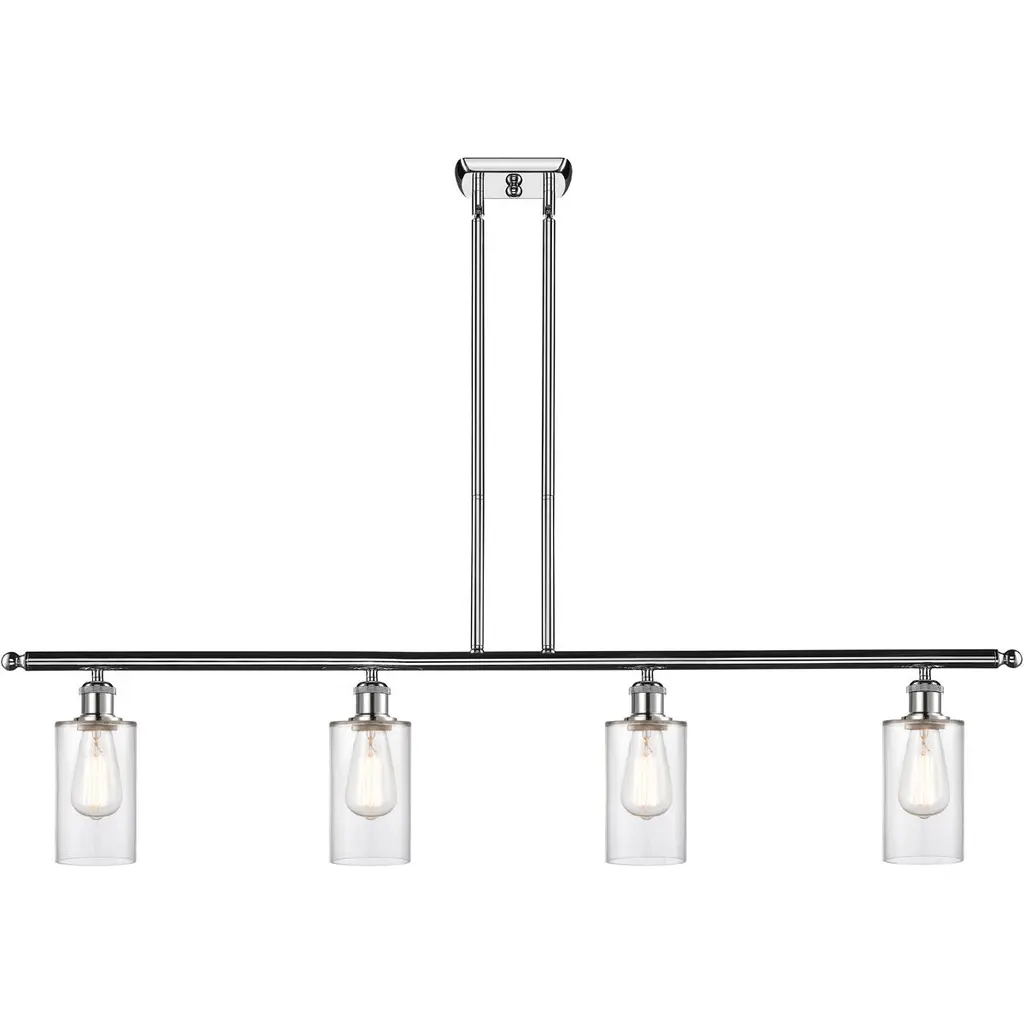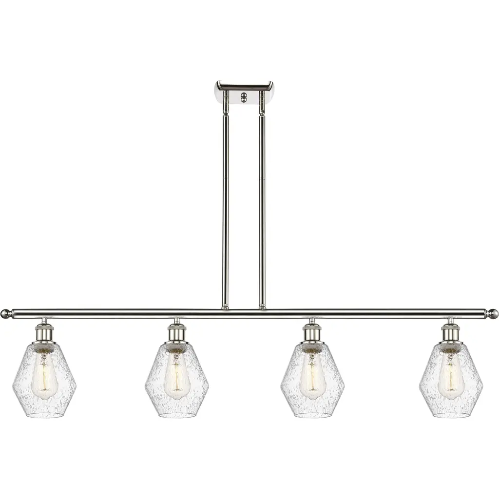 Add a smooth accent above your tables or long kitchen islands with the stately, stretched-out structure of the Everett Linear Suspension from Kichler. An airy confection of metal and glass, it uses a sharp-cornered rectangular canopy to suspend two slender downrods, each one accented by a slender brace to secure a single crossbar below. An evenly spaced array of rounded sockets extends below, surrounding its lamping with clear cylindrical shades of glass and acrylic ring accents that extend an elegant glow in all directions.