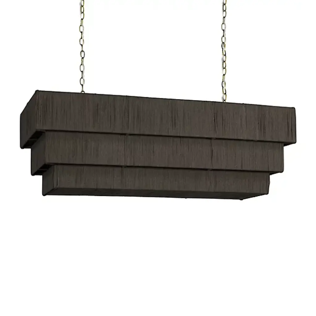 The Everly Rectangular Chandelier from Palecek is a step above, placing tiers of hand-woven material covered in a warm light overhead. Palecek finds inspiration in the beauty of natural materials. This chandelier calls for natural abaca to be shaped as fine ropes. The ropes are woven one by one in series over a wide rectangular metal frame for a dressy shade. The artisanal rectangles tighten in scale towards the bottom for a gradual visual. Lamping lines up inside, away from sight, to prevent glare. Hung with an elegant chain, this chandelier disperses a spread of filtered illumination.