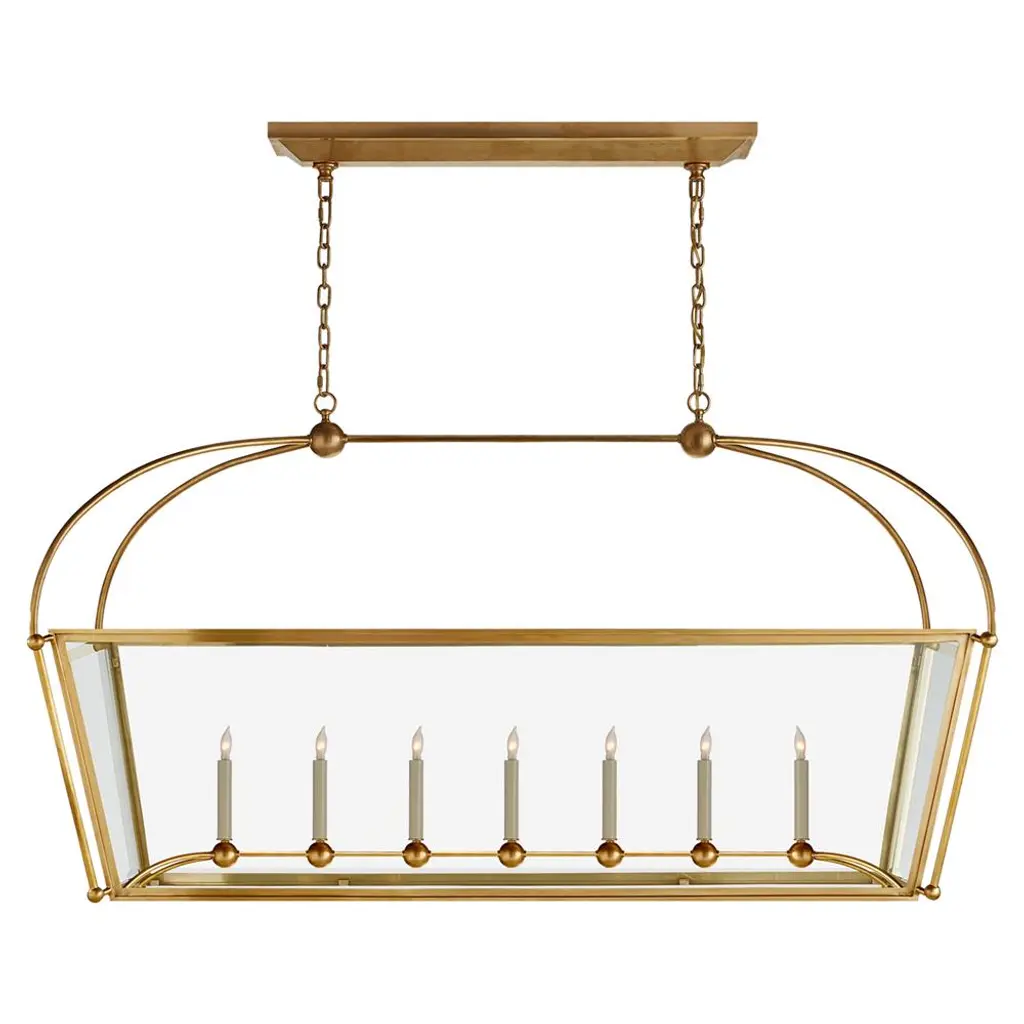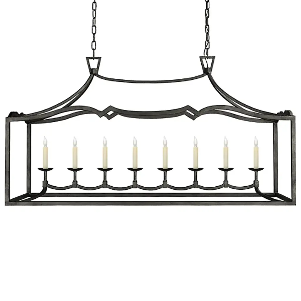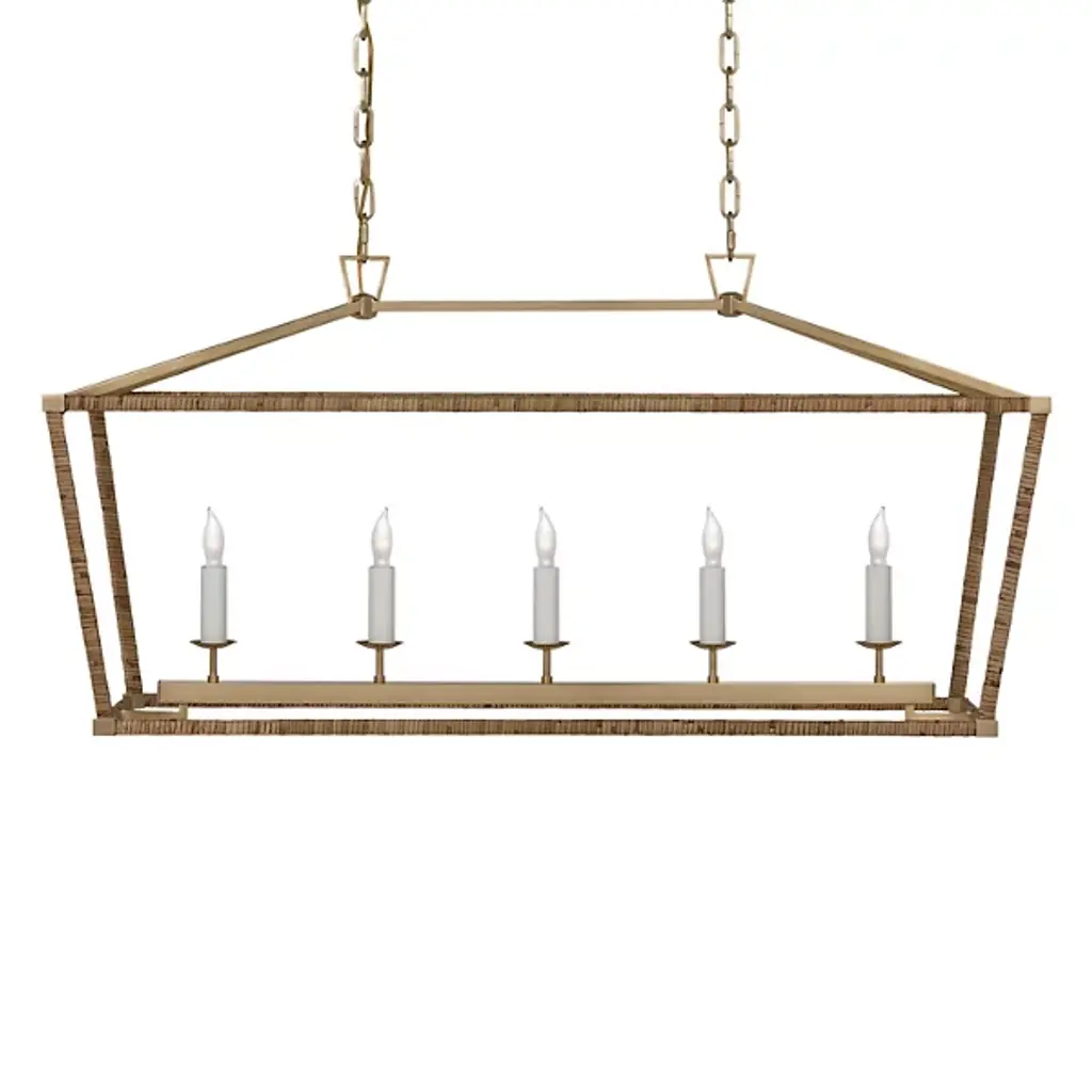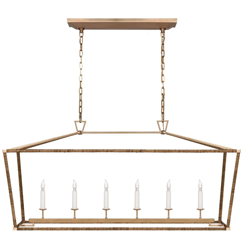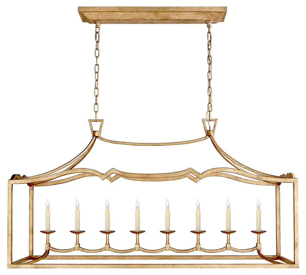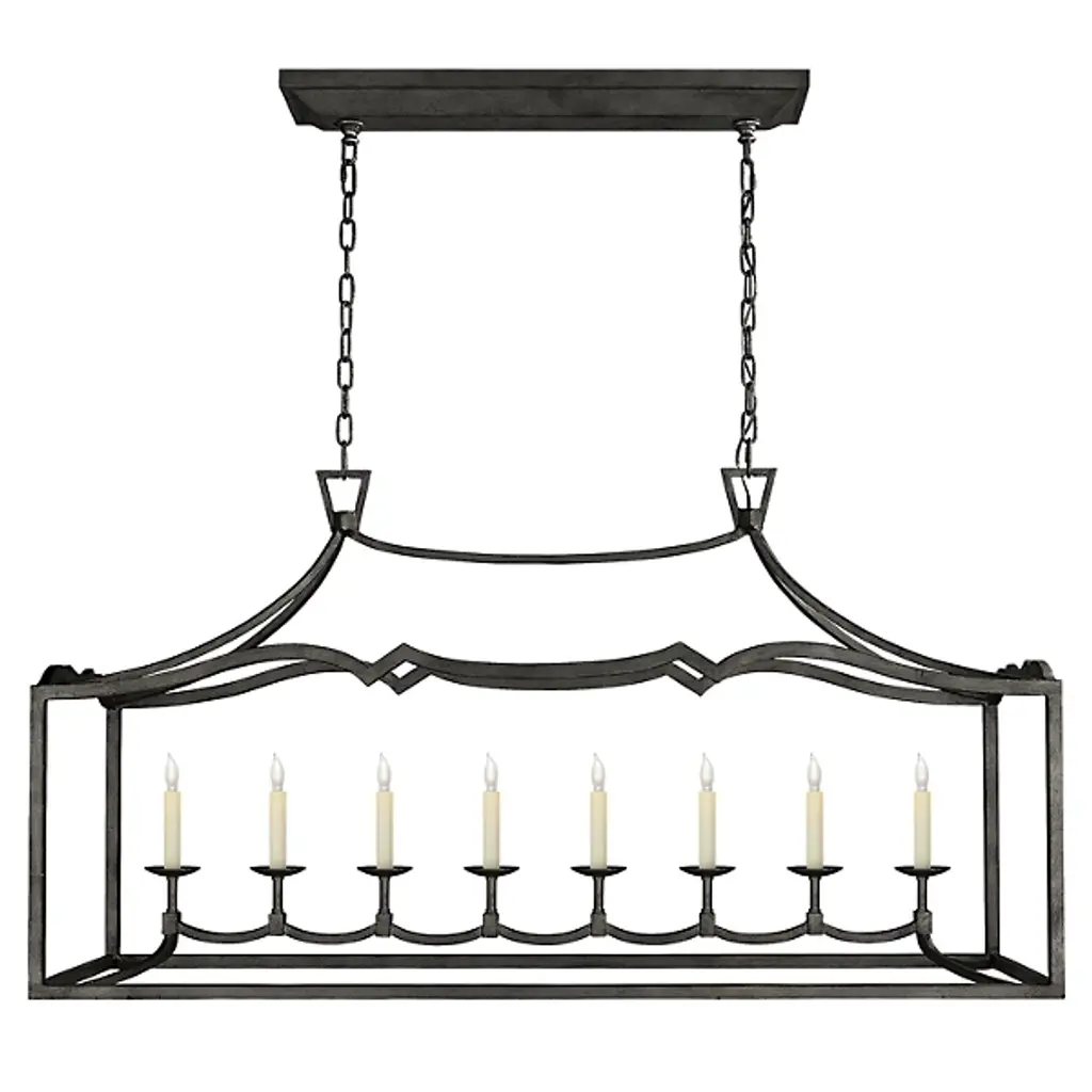 The Fancy Darlana Linear Suspension by Visual Comfort Signature, formerly known as Visual Comfort, delivers the stylish sophistication your home deserves. Its rectangular shape makes the chandelier especially suitable for bringing proper illumination to kitchen islands and would look equally fabulous accenting formal dining room tables. A center row of candelabra sockets and shapely detail along the top add a classy finishing touch to this eye-catching chandelier.