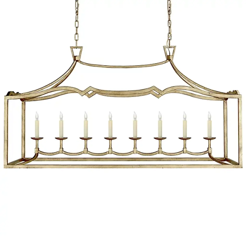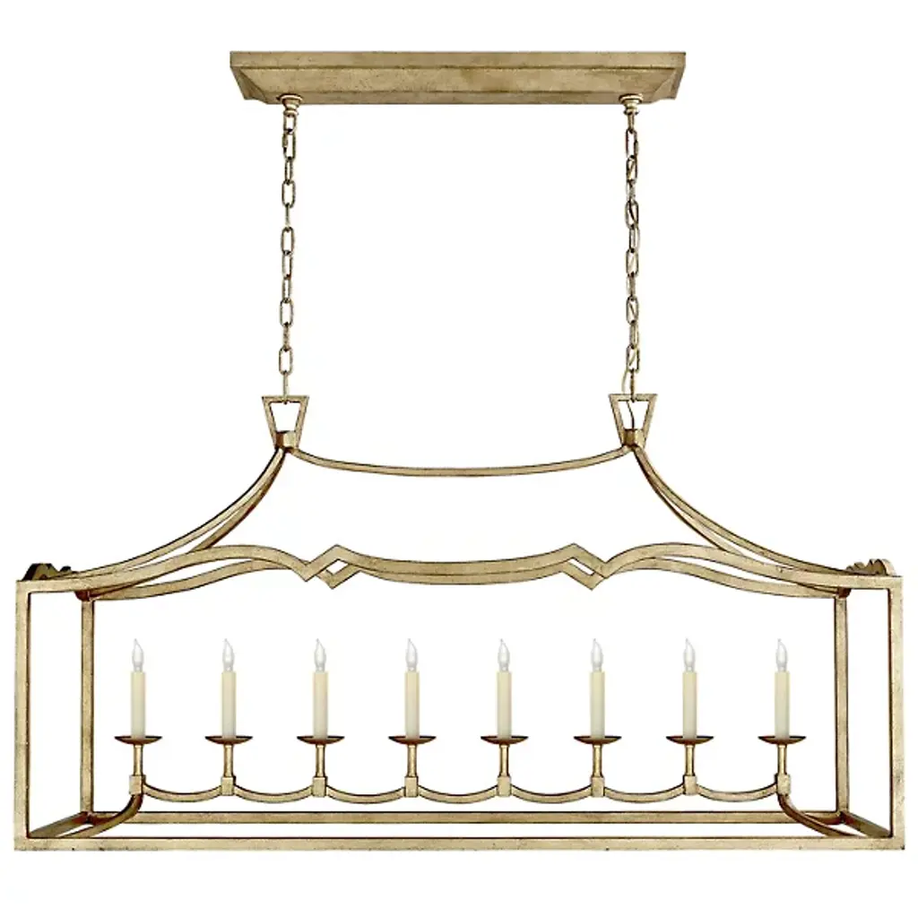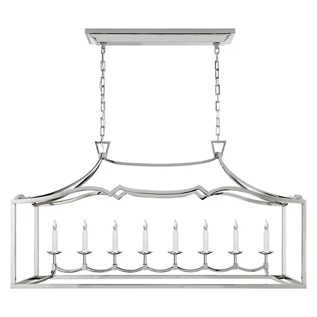 The Fancy Darlana Linear Suspension by Visual Comfort Signature, formerly known as Visual Comfort, delivers the stylish sophistication your home deserves. Its rectangular shape makes the chandelier especially suitable for bringing proper illumination to kitchen islands and would look equally fabulous accenting formal dining room tables. A center row of candelabra sockets and shapely detail along the top add a classy finishing touch to this eye-catching chandelier.