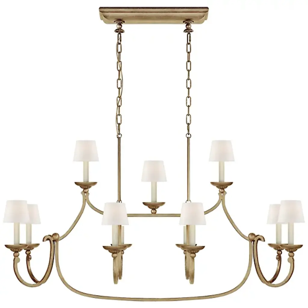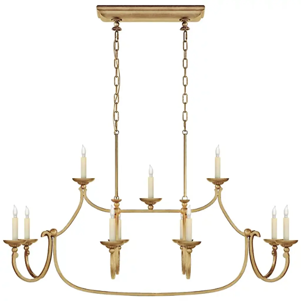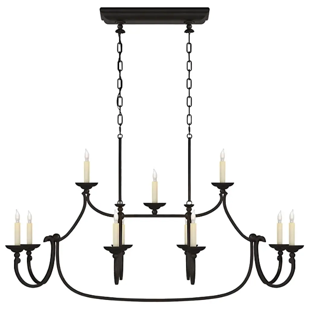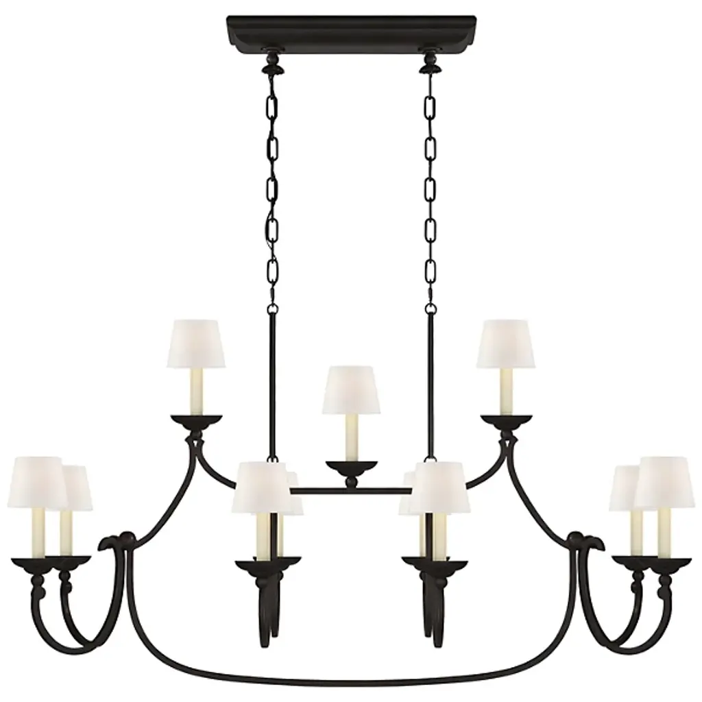 Well-received Visual Comfort Signature, formerly known as Visual Comfort, brand and designer Chapman Myers have masterfully collaborated to present a casual elegance in the stunningly beautiful Flemish Large Linear Suspension. Made in the USA, a sturdy steel structure comes finished in aged iron. Each arm curves up to hold a cupped fixture meant to hold candelabra base incandescent lamps. The overall composition of this light is complex, with hints of contemporary design and traditional reminiscence. It’s a visually striking option that would enhance a dining room table, conference room, or entrance with a grand sense of style.