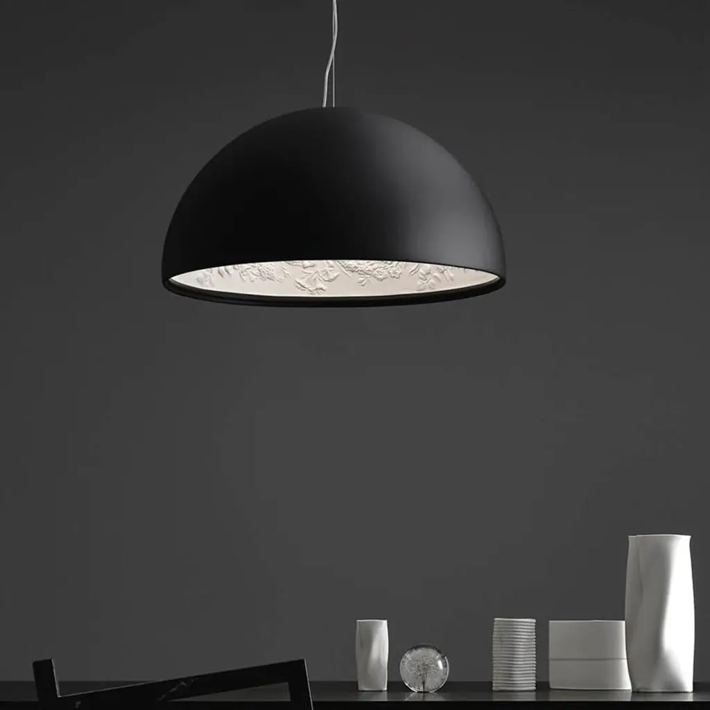 Flos Skygarden S2 suspension lamp in matt black by Marcel WandersMaterial: Plaster, glass, stainless steelLamp type: HalogenLamp included: YesLight source: 1 x 250W T-10 medium frosted halogen (Included)Mounting: Ceiling pendantDimming Protocol: DimmableEnvironment: Indoor - dry locationVoltage: 120IP rating: IP20.