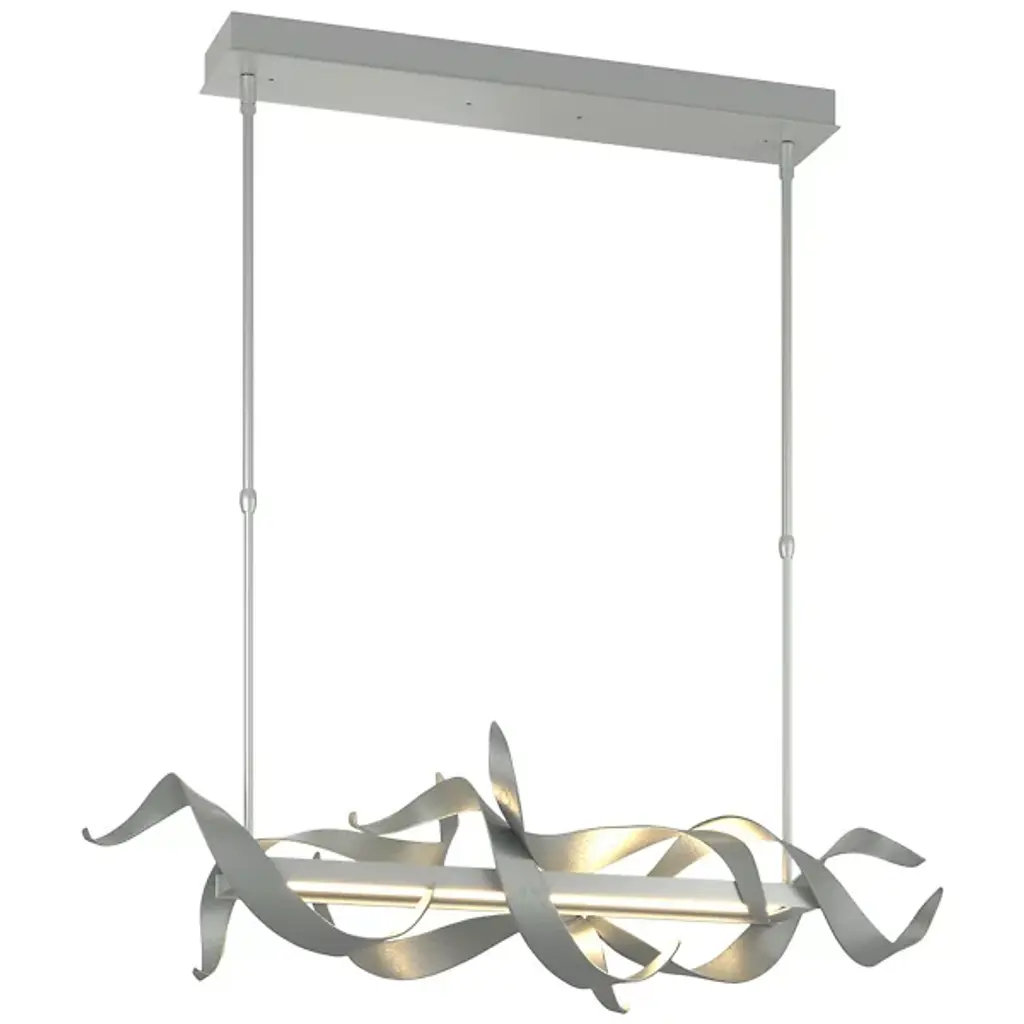 The Hubbardton Forge Folio LED Linear Suspension features leaf like forms around a horizontal guide plate containing the LED light source. A mixture of organic and non organic shapes give this piece variety as well as an interesting juxtaposition. The energy efficient LEDs illuminate with both an up and down light, lighting the space and the curved planes surrounding the plate.
