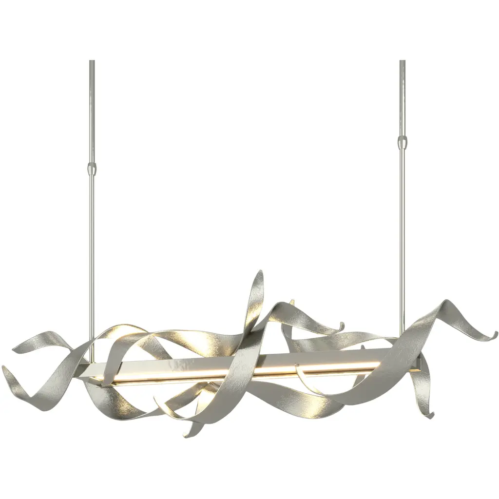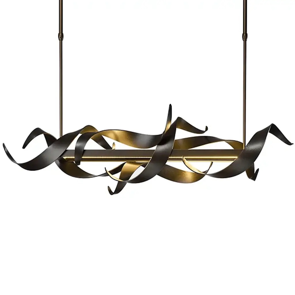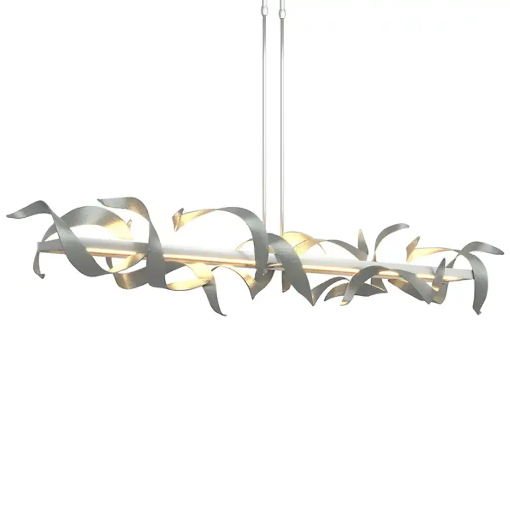 The Hubbardton Forge Folio LED Linear Suspension features leaf like forms around a horizontal guide plate containing the LED light source. A mixture of organic and non organic shapes give this piece variety as well as an interesting juxtaposition. The energy efficient LEDs illuminate with both an up and down light, lighting the space and the curved planes surrounding the plate.