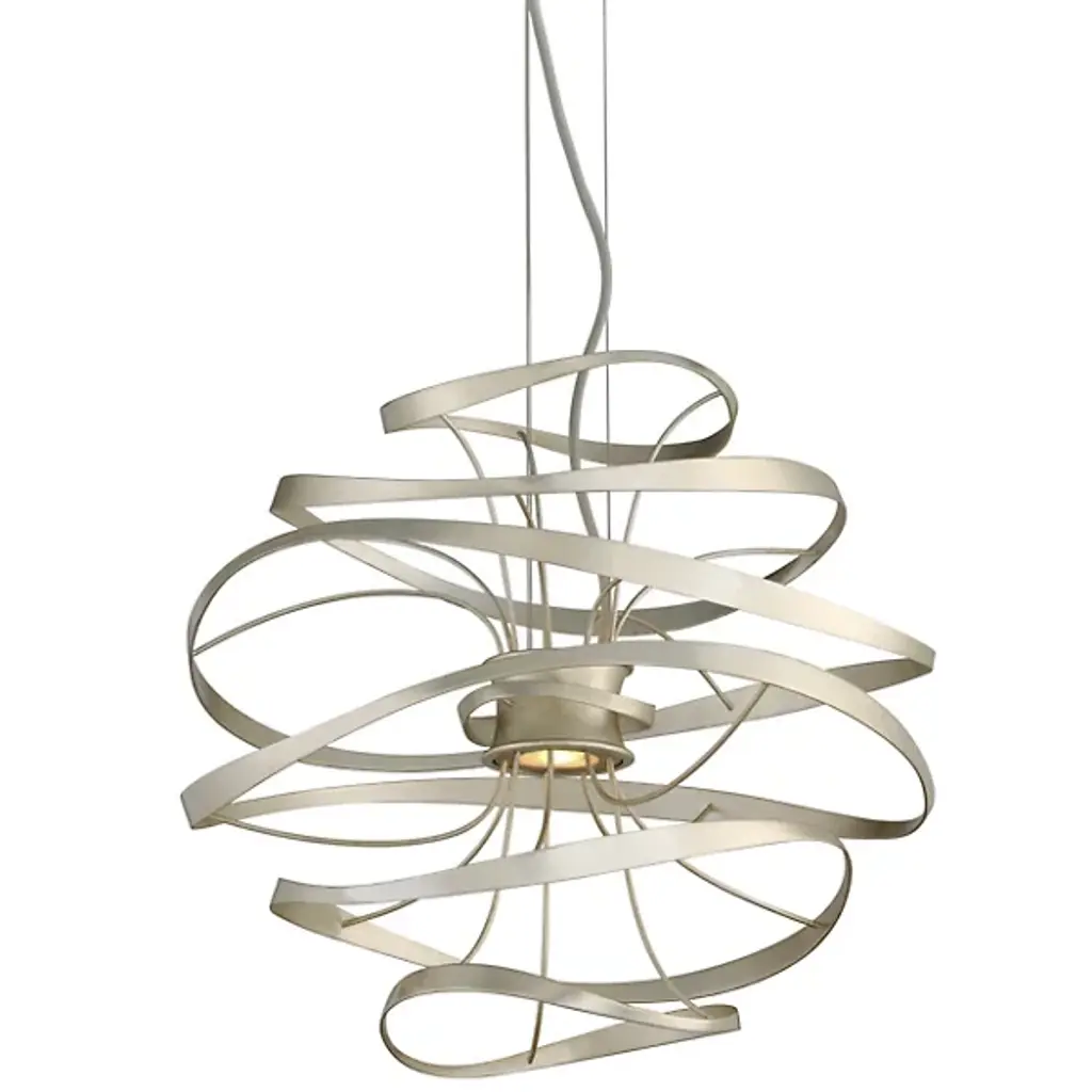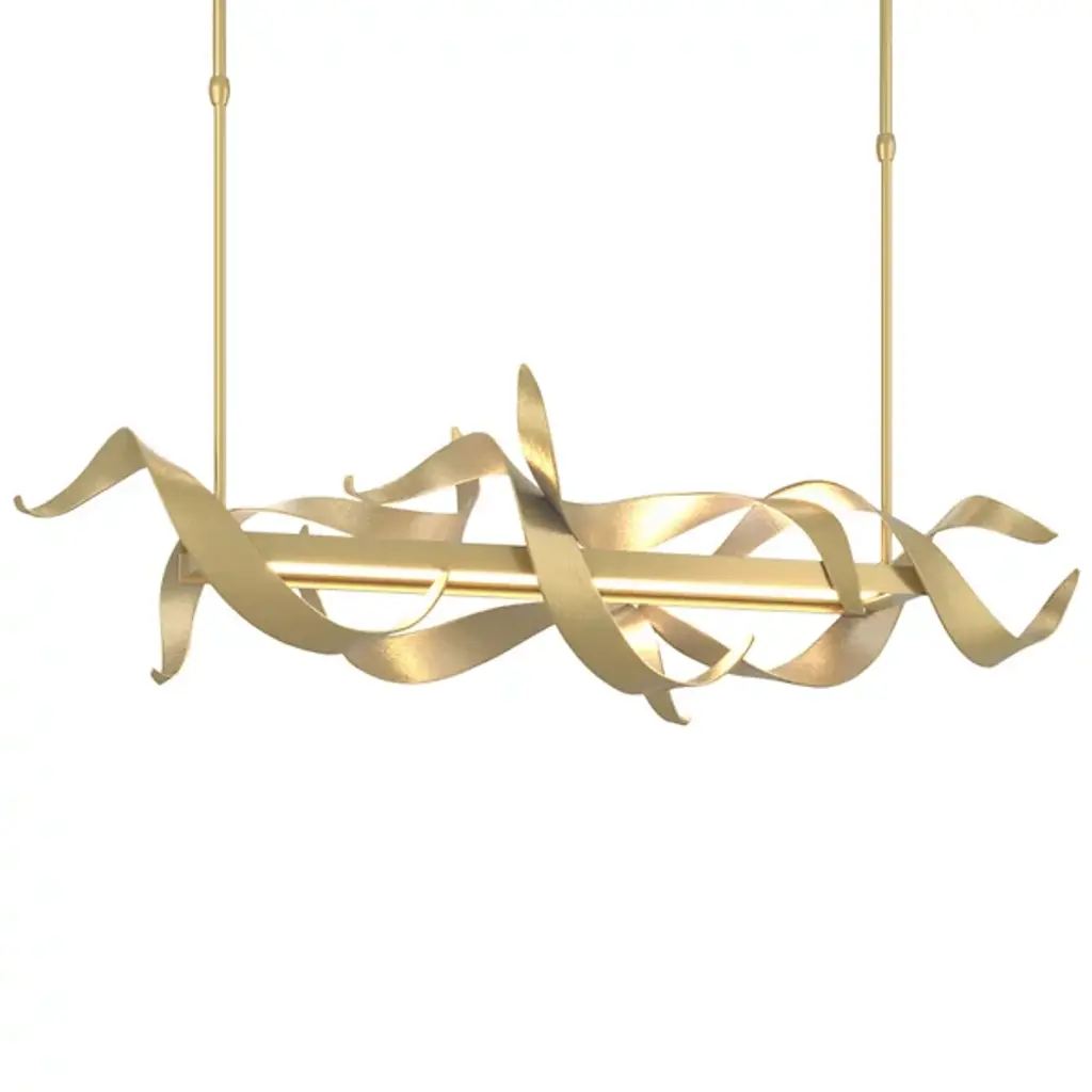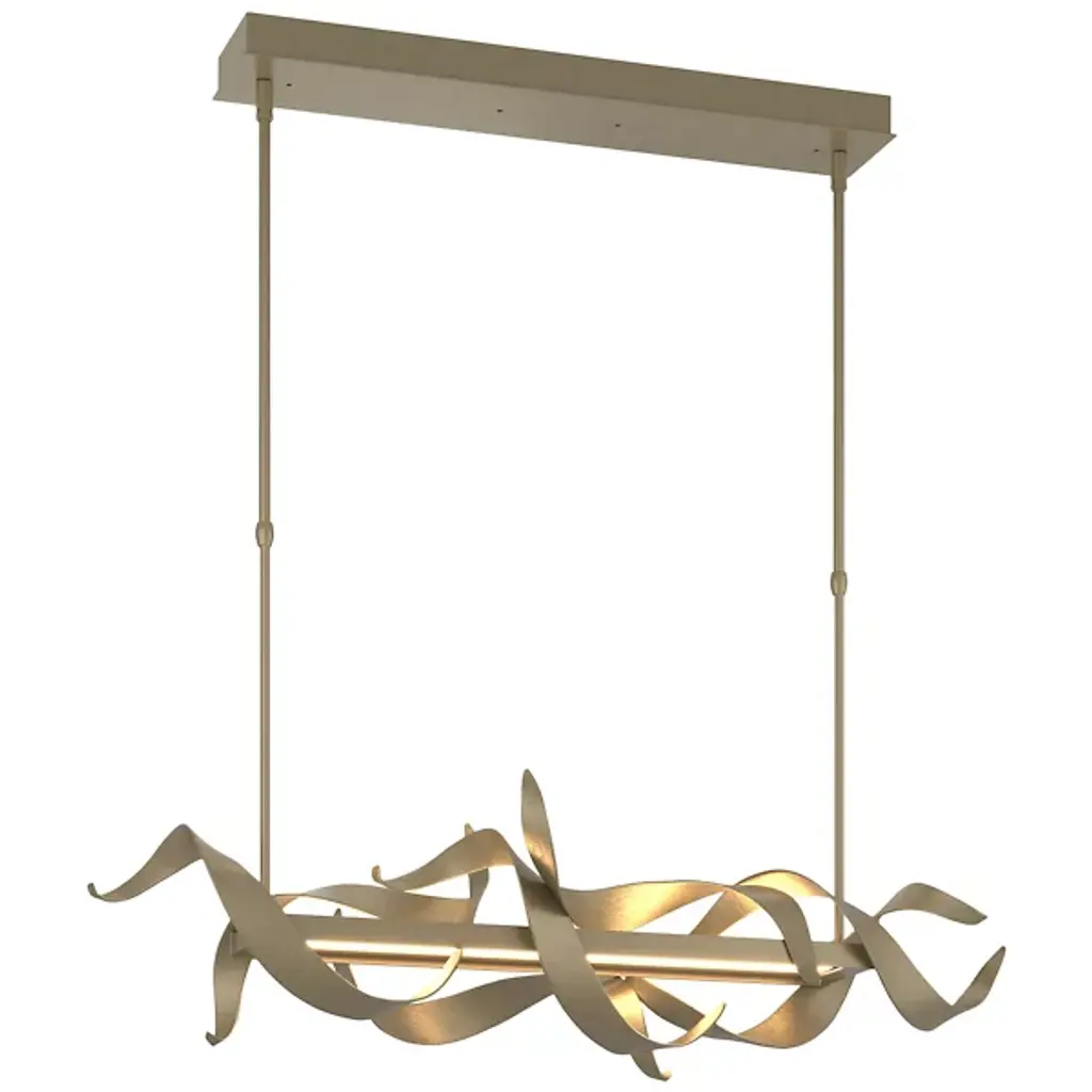 The Hubbardton Forge Folio LED Linear Suspension features leaf like forms around a horizontal guide plate containing the LED light source. A mixture of organic and non organic shapes give this piece variety as well as an interesting juxtaposition. The energy efficient LEDs illuminate with both an up and down light, lighting the space and the curved planes surrounding the plate.