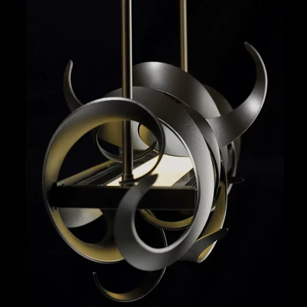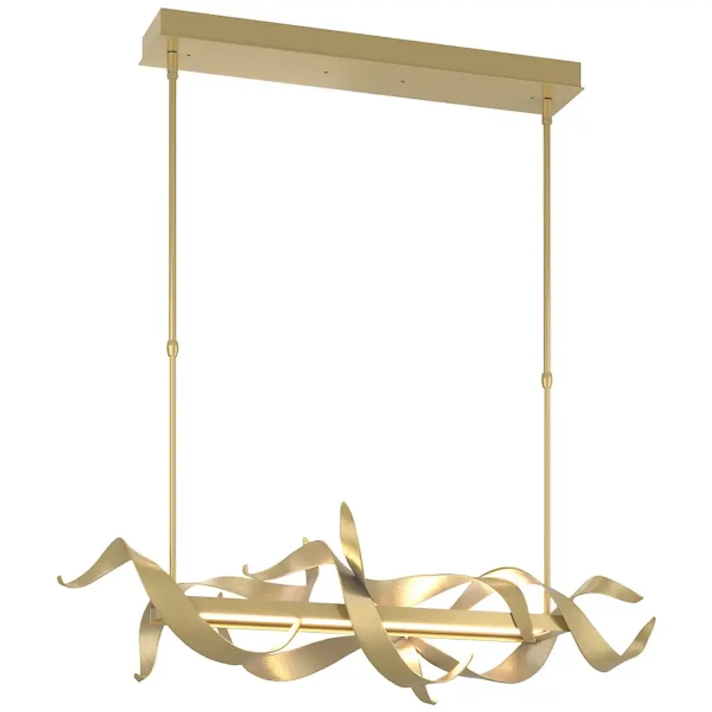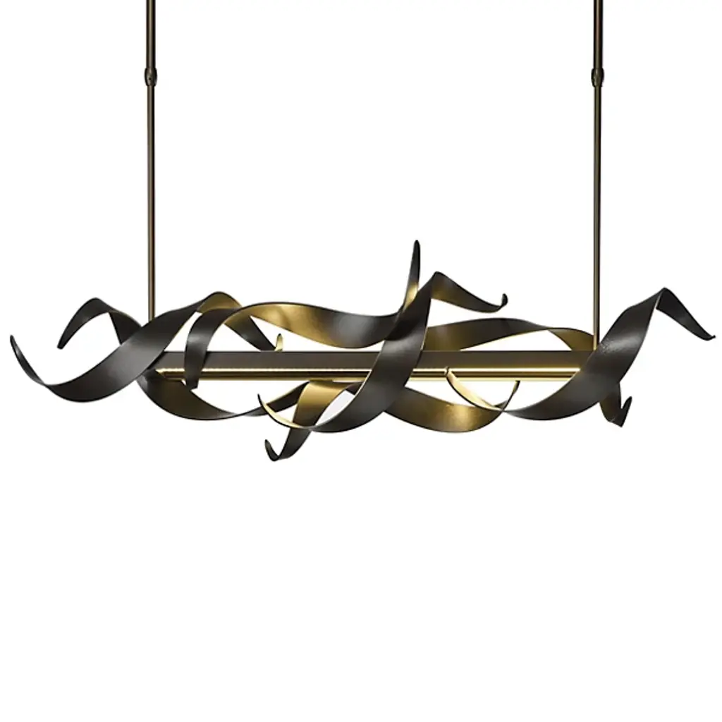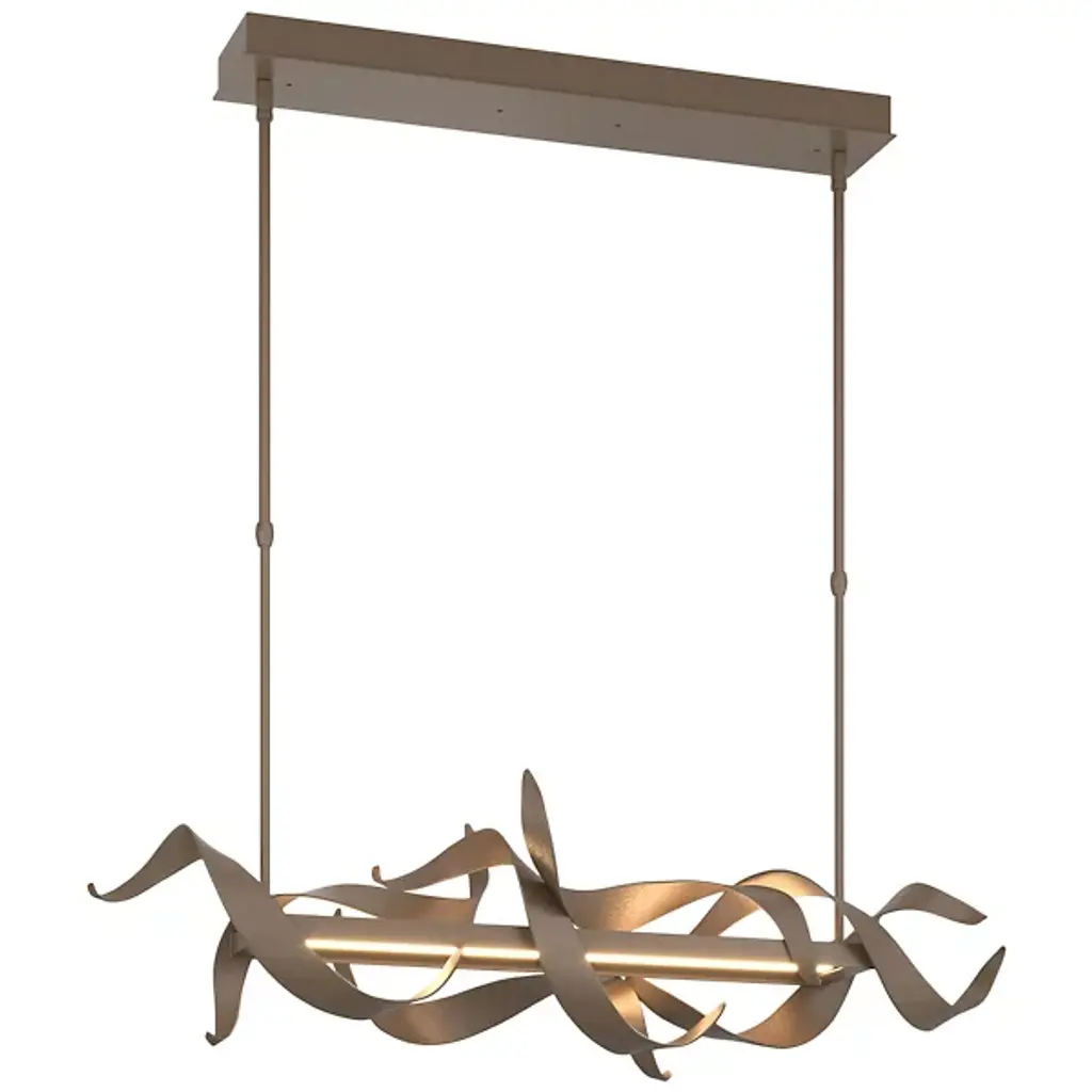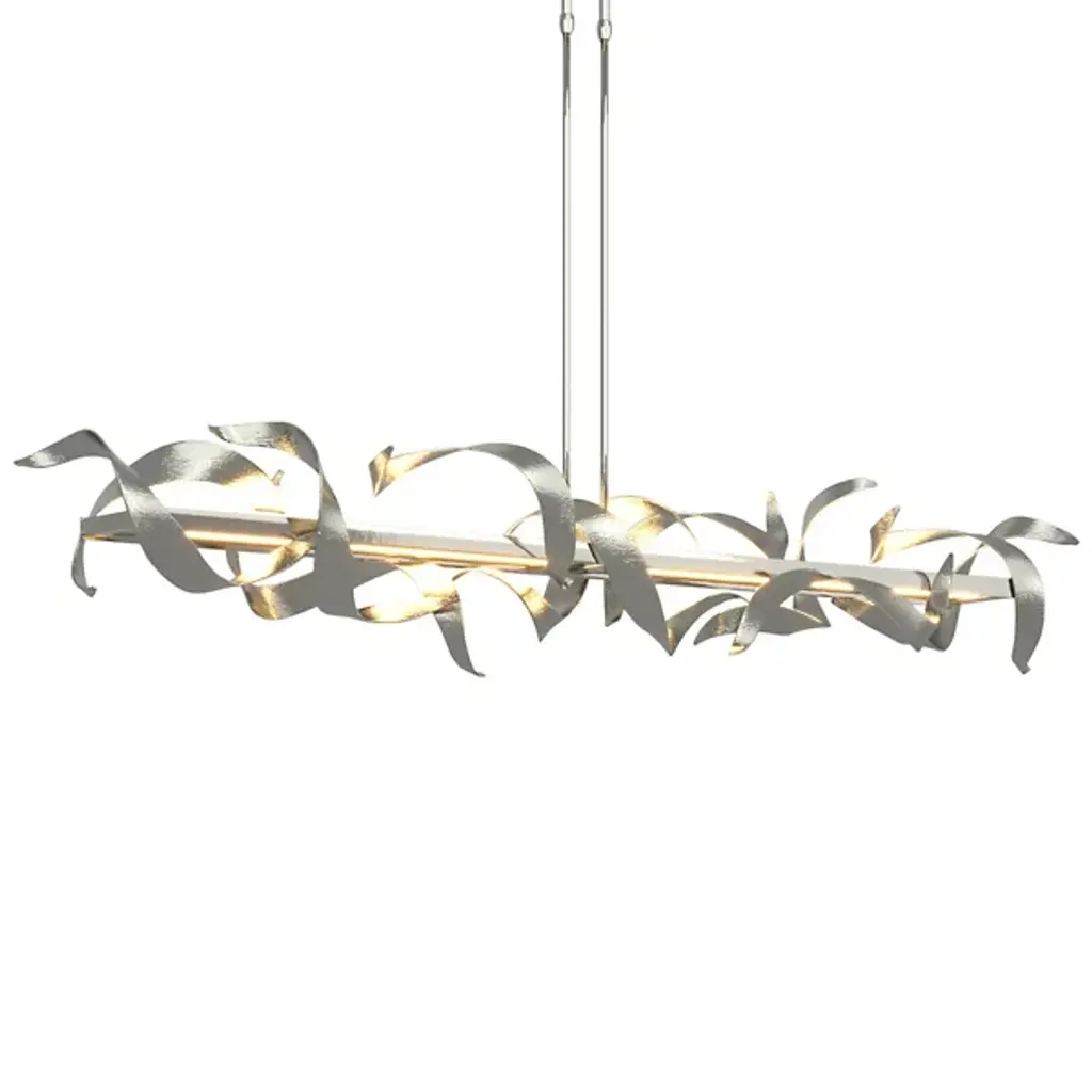The Hubbardton Forge Folio LED Linear Suspension features leaf like forms around a horizontal guide plate containing the LED light source. A mixture of organic and non organic shapes give this piece variety as well as an interesting juxtaposition. The energy efficient LEDs illuminate with both an up and down light, lighting the space and the curved planes surrounding the plate.