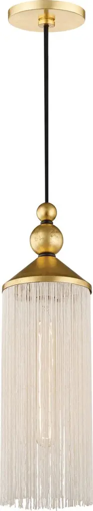 Elevate your space with the Fringe LED Hanging Lamp by Contardi. The Trevira CS fire-resistant shade is adorned with fringes and the satin brass body adds a touch of luxury. The dimmable LED light source can be adjusted with the three-phase dimmer switch. A perfect blend of form and function.