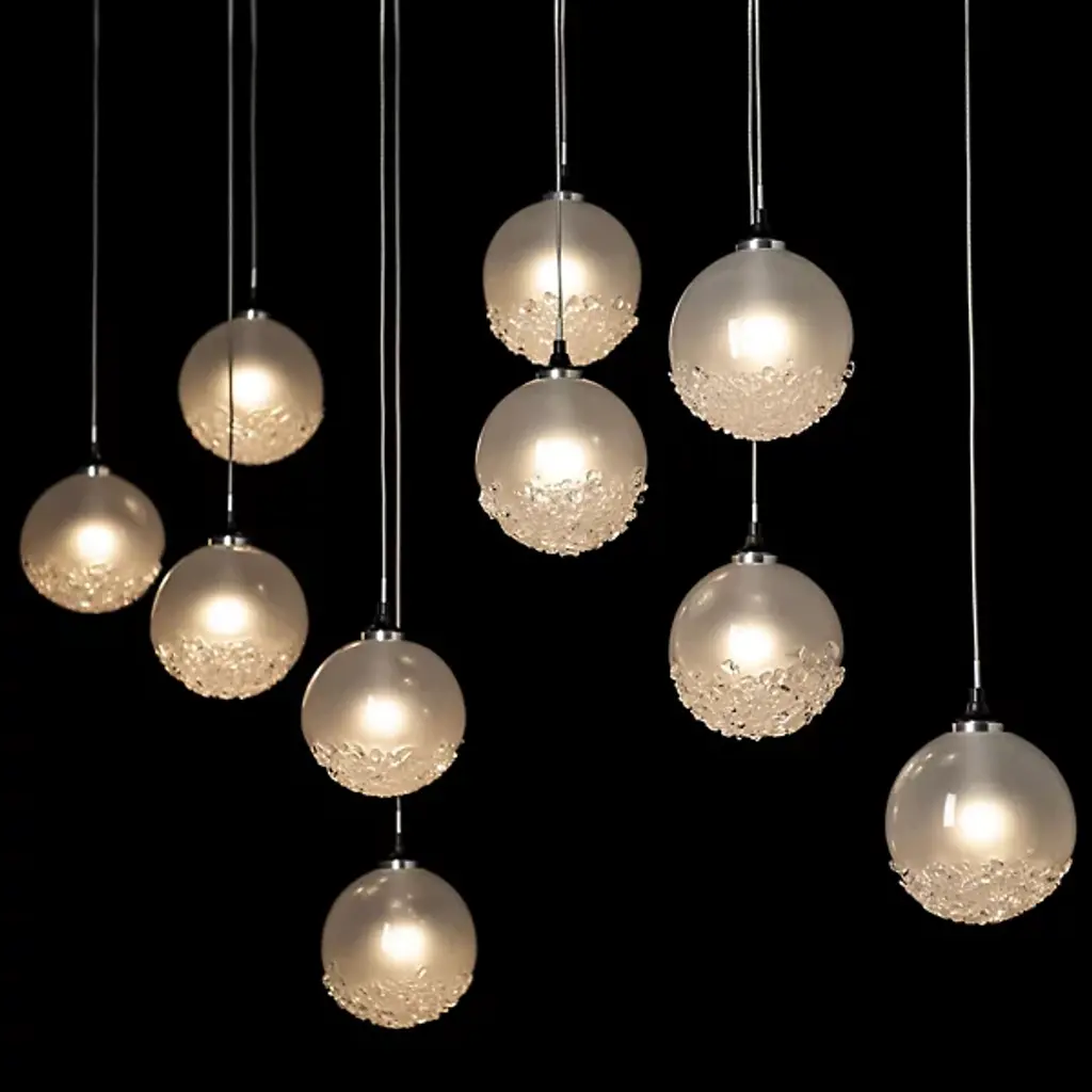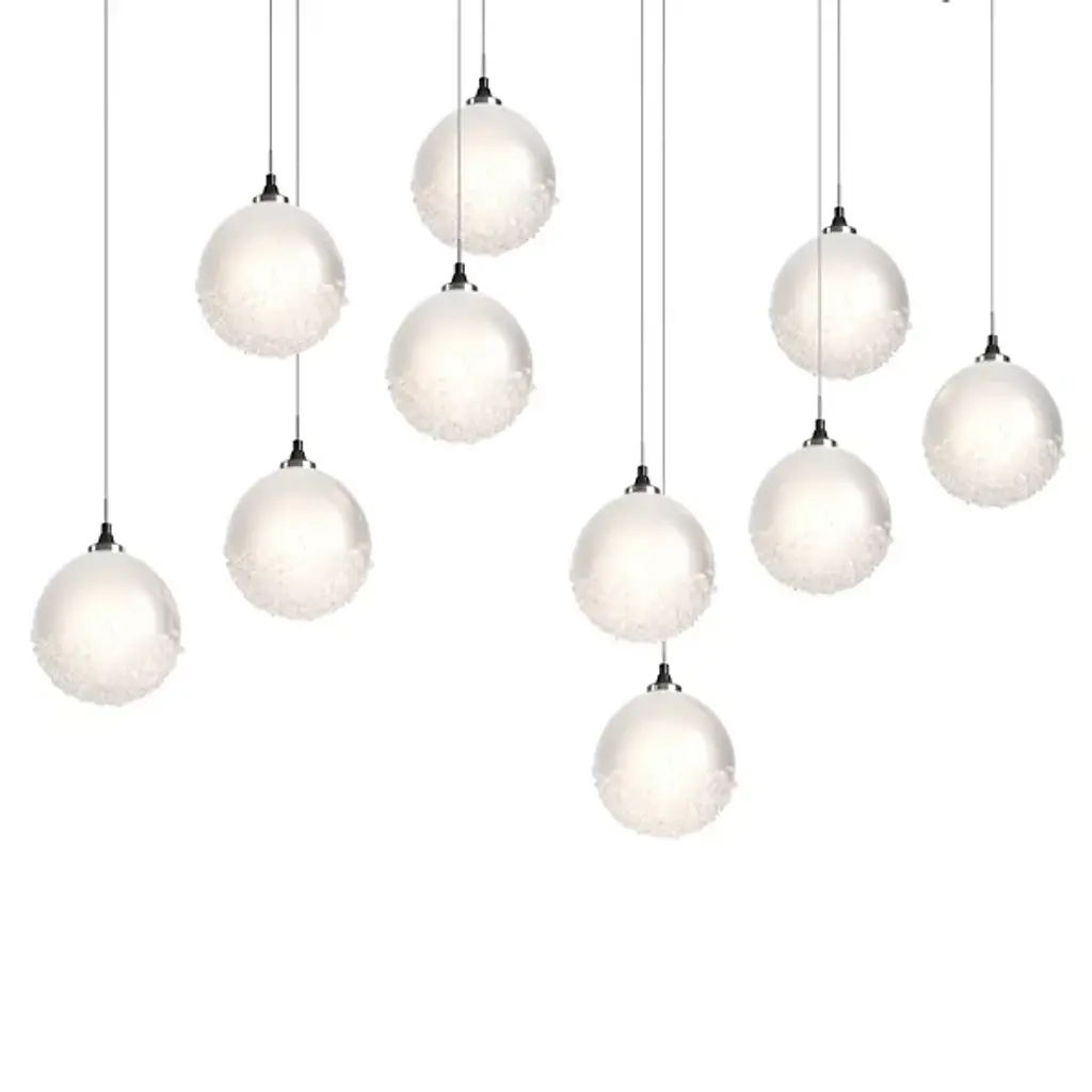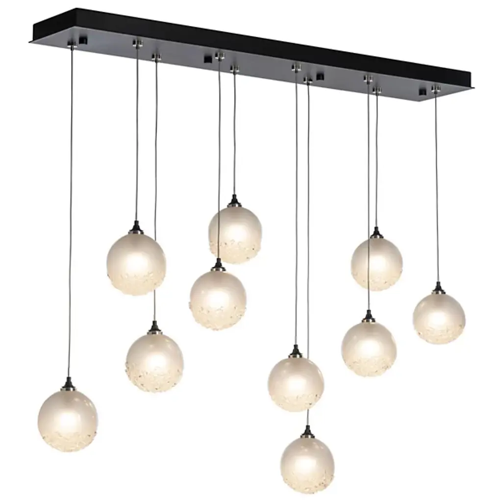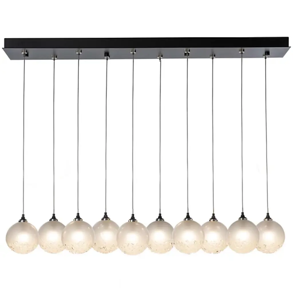 A great way to add sweetness and sparkle to modern kitchens or dining areas. The Fritz Globe Linear Suspension by Hubbardton Forge includes 10 glass globes with their bottom part covered in textural fritted glass. In addition to the sugary look, the glass frit adds shimmer to the light diffused through the shades. Each pendant comes with a suspension cable that can be individually adjusted to create the exact lighting look you want.