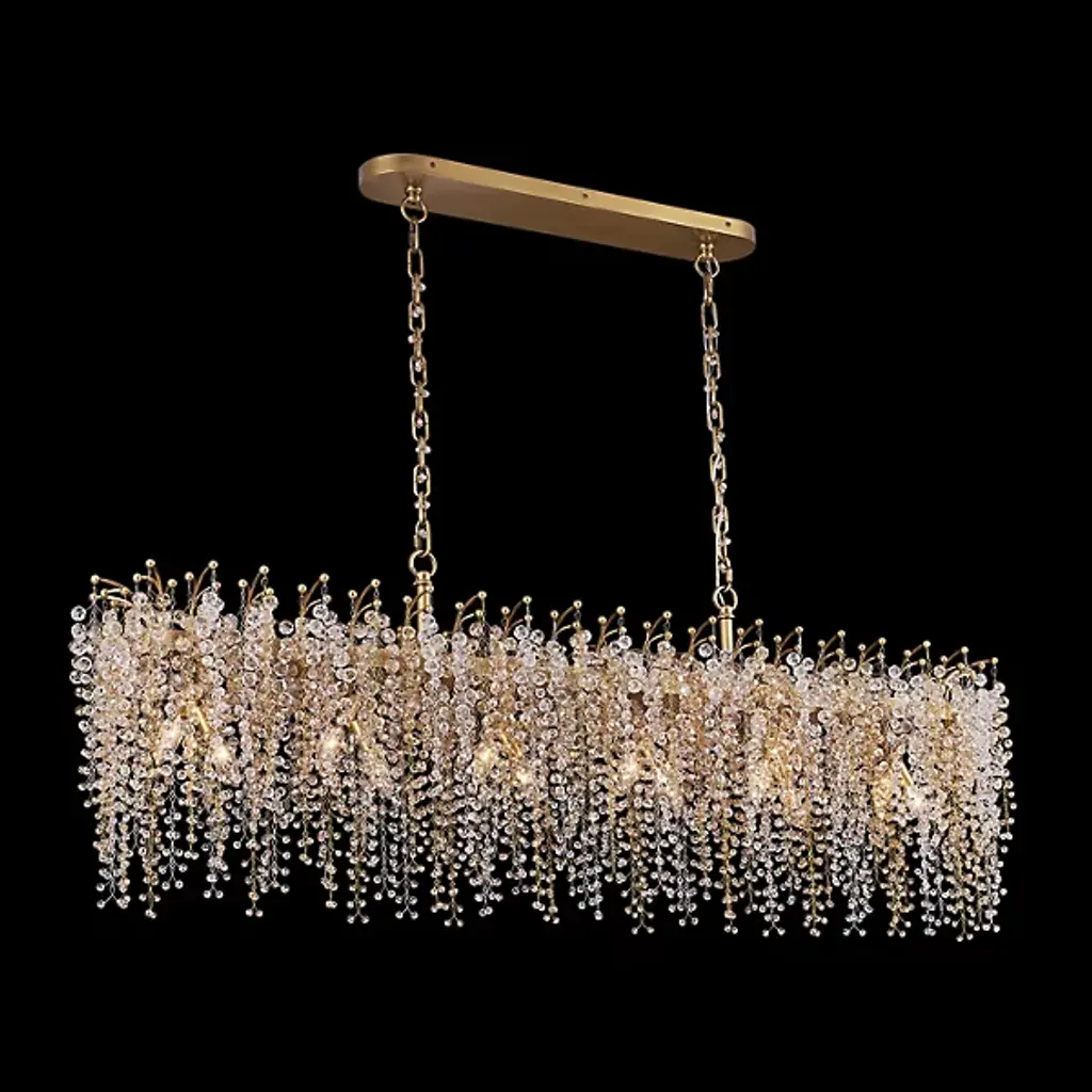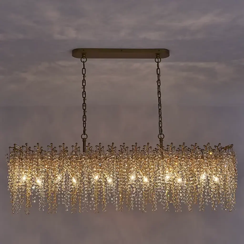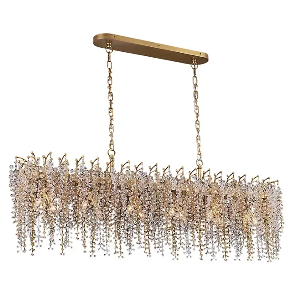 Fuji Linear Suspension from Allegri by Kalco Lighting celebrates the wisteria with its vine-like presentation. Fuji combines the beauty of nature with Bohemian charm, making a bold statement in your living space. This linear suspension is decorated with Firenze crystal illuminated by a collection of candelabra-base LEDs. You can adjust the brightness level, creating a welcoming ambiance when you pair Fuji with a separately sold ELV dimmer. Your light fixture is secured by linked chains and a ceiling canopy.