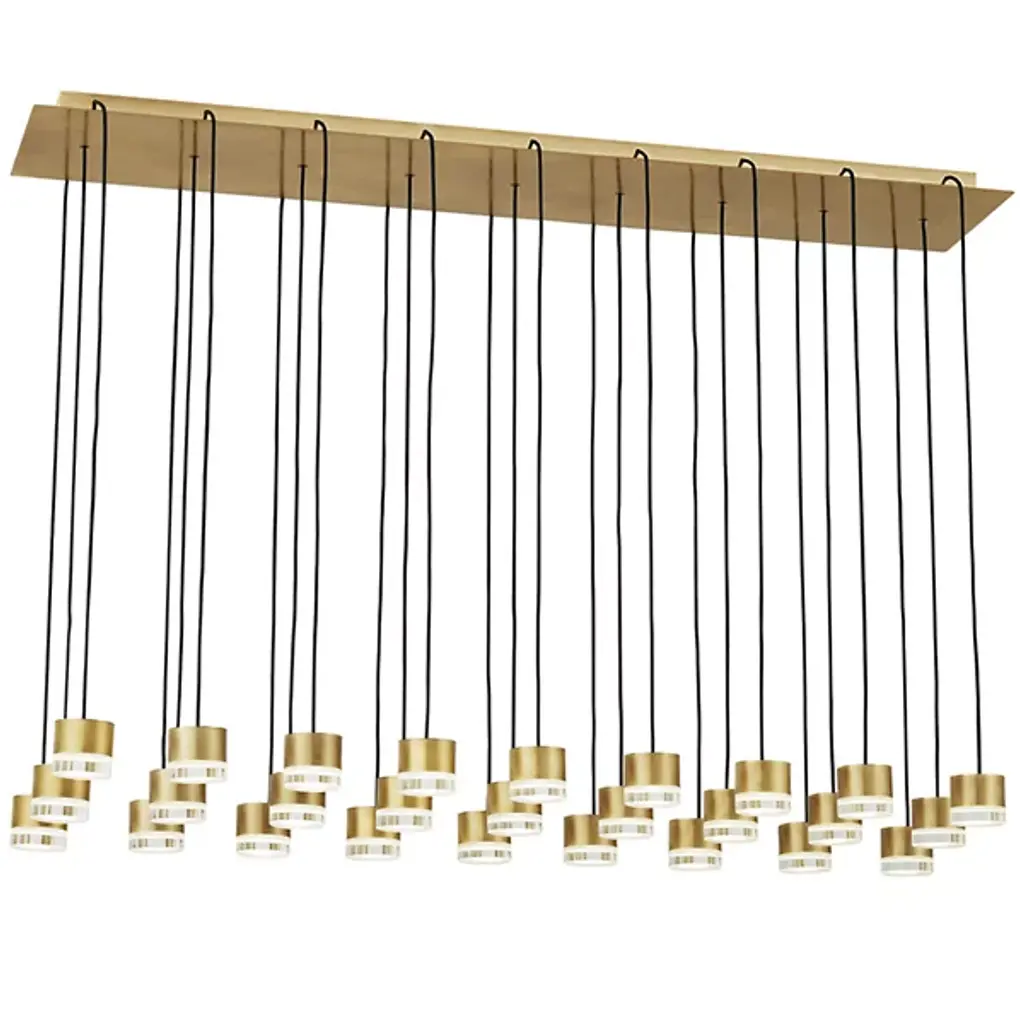 The Gable LED Linear Suspension from Visual Comfort Modern expresses minimalism through refinement, suspending crystalline-lensed pendant lights from a long rectangular canopy. Metal light housings pair with brilliant crystal optics, transmitting an even curtain of light. Designed by Sean Lavin, cylindrical forms hang via quick-connects, and their heights are easily customized for versatile installation. The crystal accents and suspended glow lend contemporary elegance, sculpting brilliance from above and becoming a visual feast for the eyes.