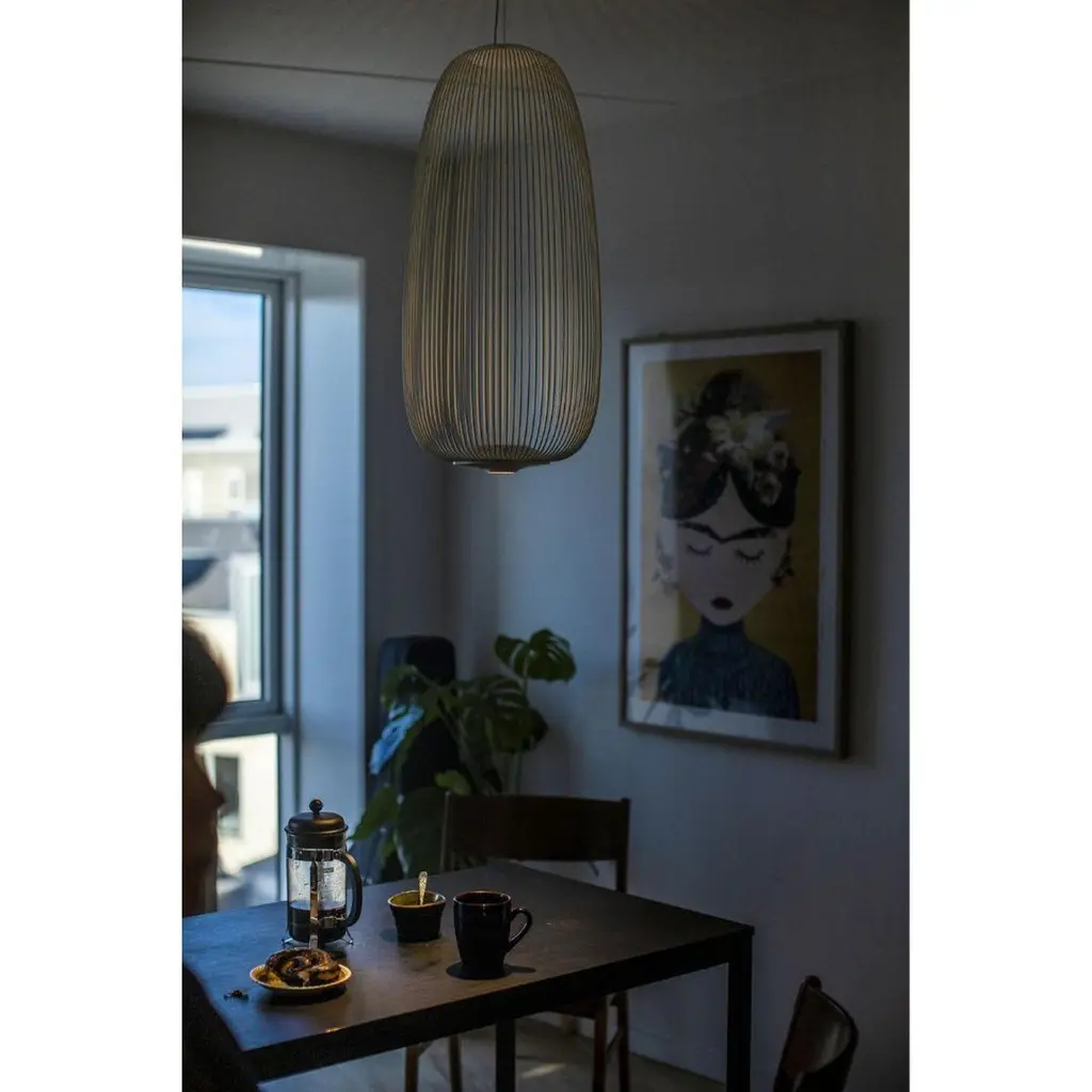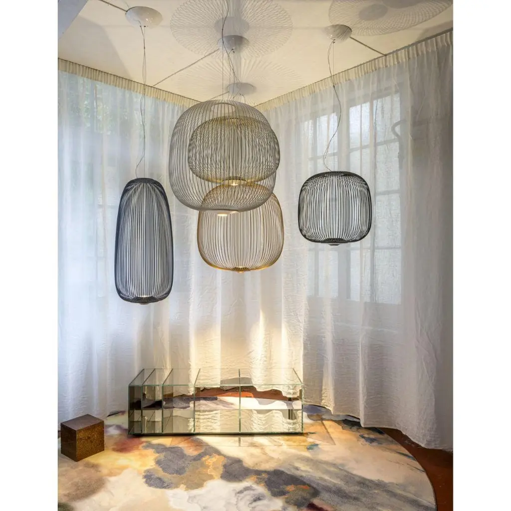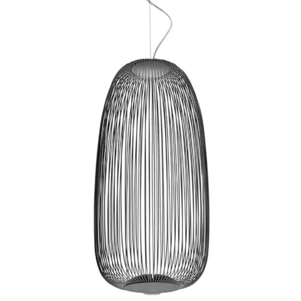 Garcia & Cumini 'Spokes 1’ metal suspension Lamp in white for FoscariniDesigned by Cumini + Garcia and produced by Foscarini, the Italian lighting firm founded in Venice on the legendary island of Murano, where generations of master craftsman have skillfully used their unmatched imagination and skill to create the most innovative works of light into the modern era. The ‘Spokes 1’ is fabricated with thoughtful attention to detail, use of high quality materials and incomparable rigor and passion. Inspired by aviaries and antique Asian lanterns, the Spokes 1's metal rods delicately diffuse light throughout its surrounding surfaces resulting in a delightful interplay of shadow and light. The "Spokes 1' is flawlessly executed in varnished steel rods which is achieved through a meticulous step by step process.Price per item. In stock and available in unlimited quantities. Available in black, gold, copper or graphite in separate listings for an additional cost. Available as well in different shapes (Spokes 2, Spokes 3). This listing is for the Spokes 1 in white.In stock lead time 2 weeks. Out of stock can add 12 weeks or more. Please note that inventory availability can change without notice. Please contact us for current lead times prior to placing time sensitive orders.Illuminated via integrated 40w LED providing 3935 maximum lumens with 2700K color and CRI 90. Dimmable according to switch (switch not included). This lamp is ETL listed. Not UL listed, but recommended UL listing possible from an authorized 3rd party vendor for an additional fee.All sales final.