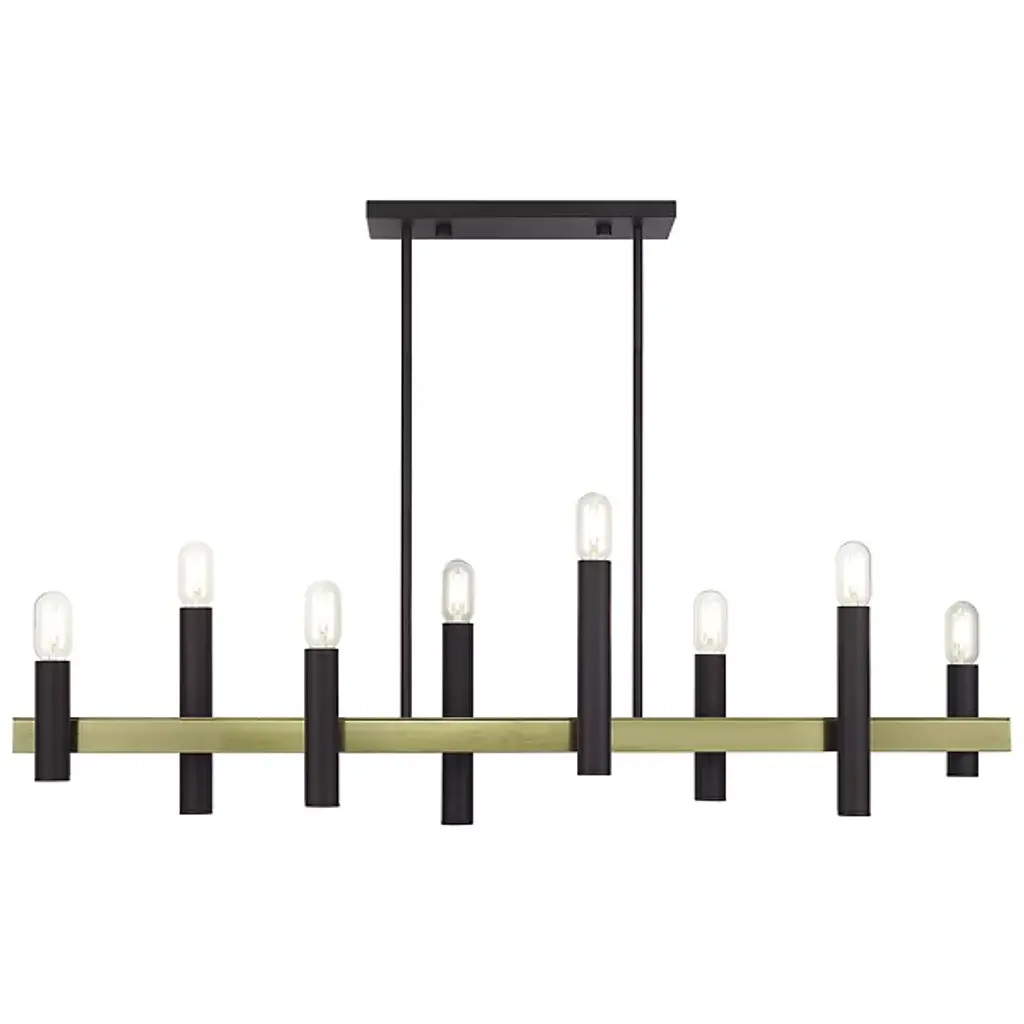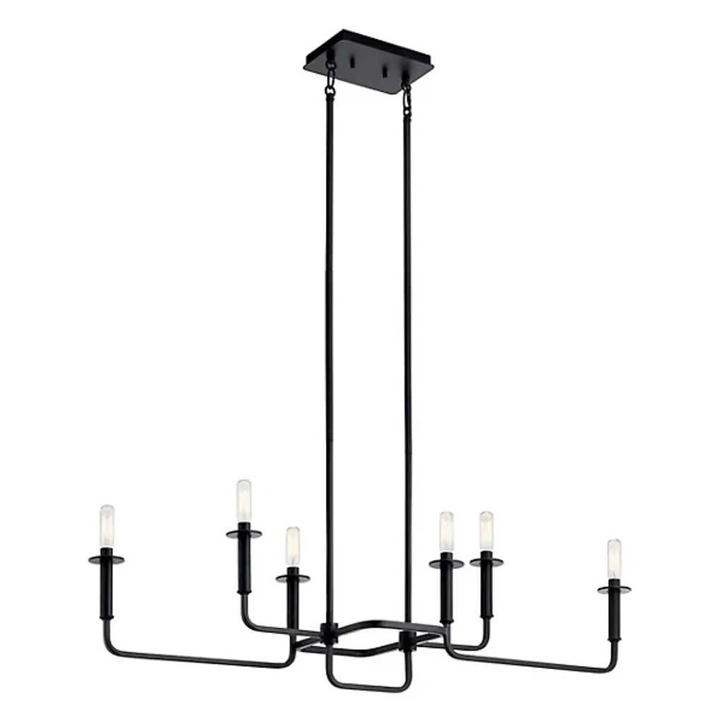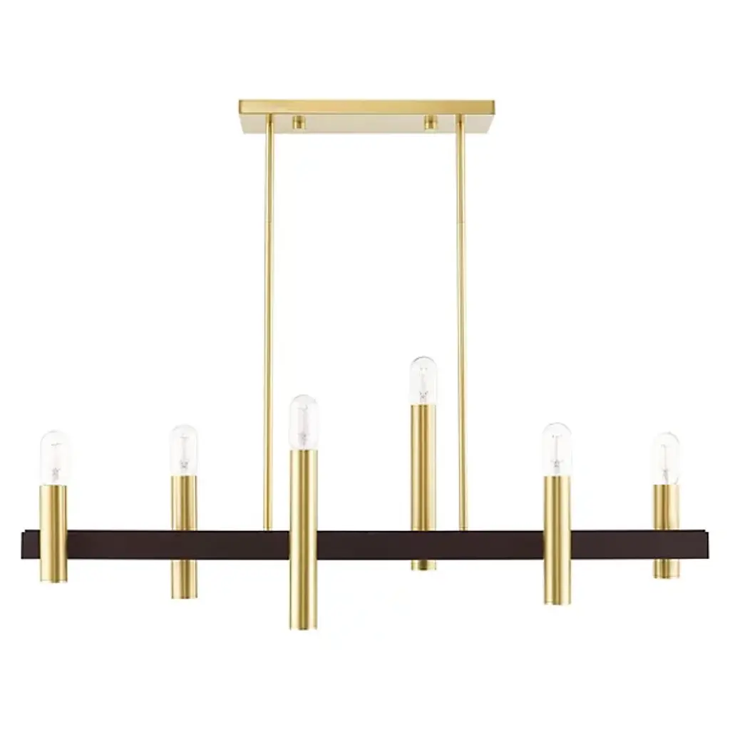 The Garett Linear Suspension from Alder & Ore gets the eyes scanning from left to right with a beautiful demonstration of movement, scale, and variety. This piece’s use of clean shapes can be appreciated in the modern and contemporary setting. Its horizontal composition serves as a natural fit over a dining table or kitchen island. The slim metal crossbar gives the piece a sense of order and a pop of elegant color contrast. Sleek, slender lamp holders move in and out of the crossbar with a flowy quality. The different sizes of the holders elevate their dynamic silhouette. Exposed bulbs rest on top and produce brilliant pops of light for a spacious glow.