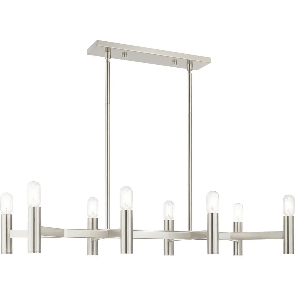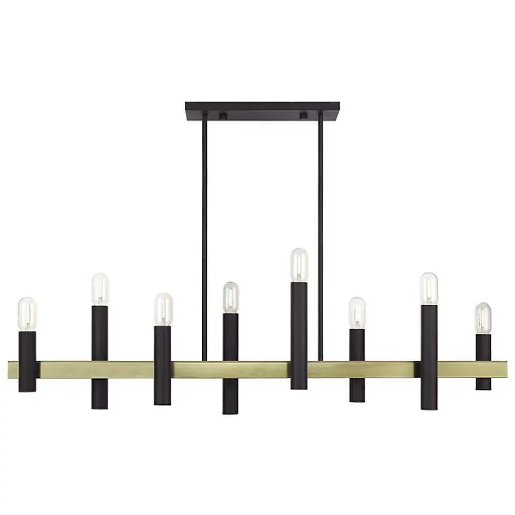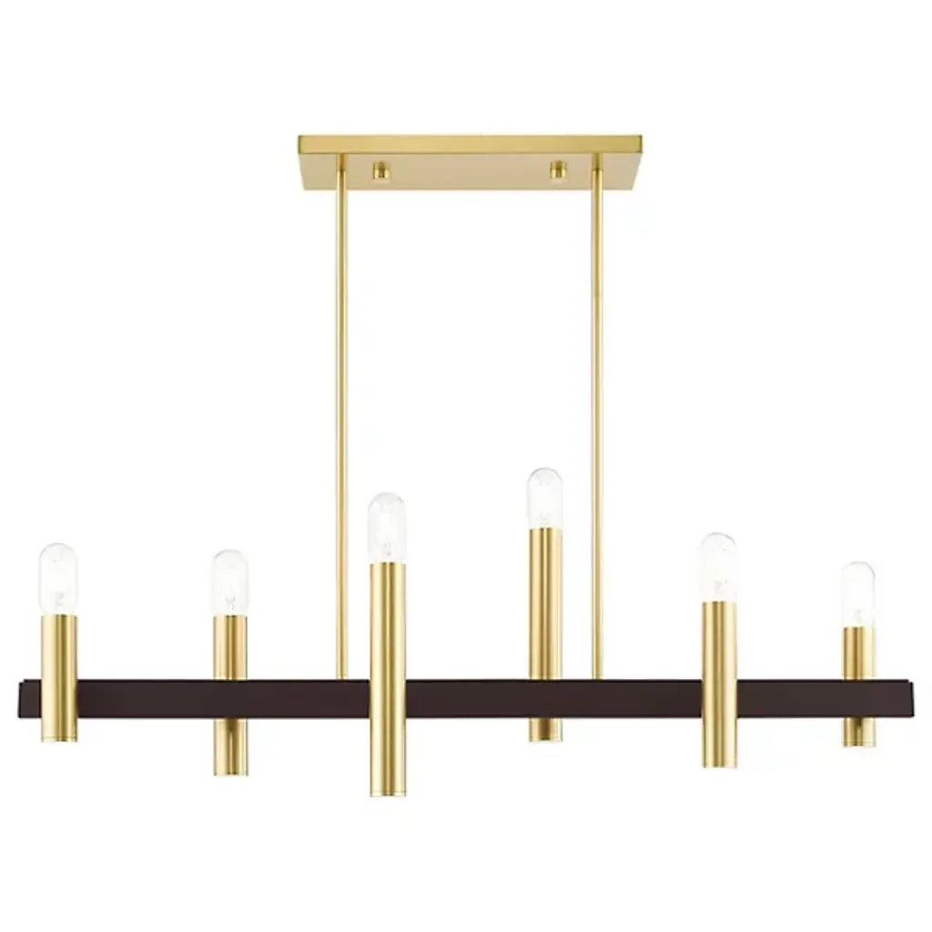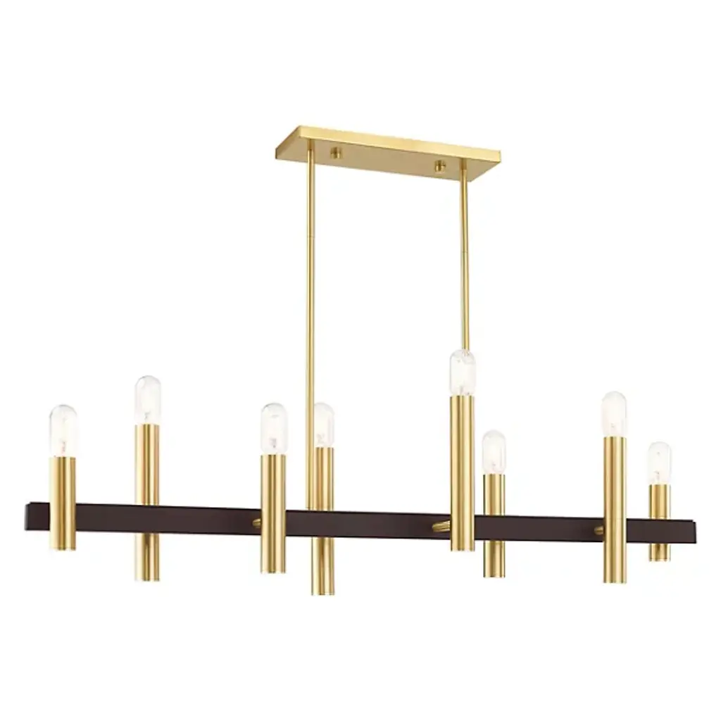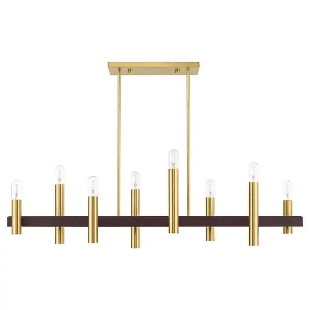 The Garett Linear Suspension from Alder & Ore gets the eyes scanning from left to right with a beautiful demonstration of movement, scale, and variety. This piece’s use of clean shapes can be appreciated in the modern and contemporary setting. Its horizontal composition serves as a natural fit over a dining table or kitchen island. The slim metal crossbar gives the piece a sense of order and a pop of elegant color contrast. Sleek, slender lamp holders move in and out of the crossbar with a flowy quality. The different sizes of the holders elevate their dynamic silhouette. Exposed bulbs rest on top and produce brilliant pops of light for a spacious glow.