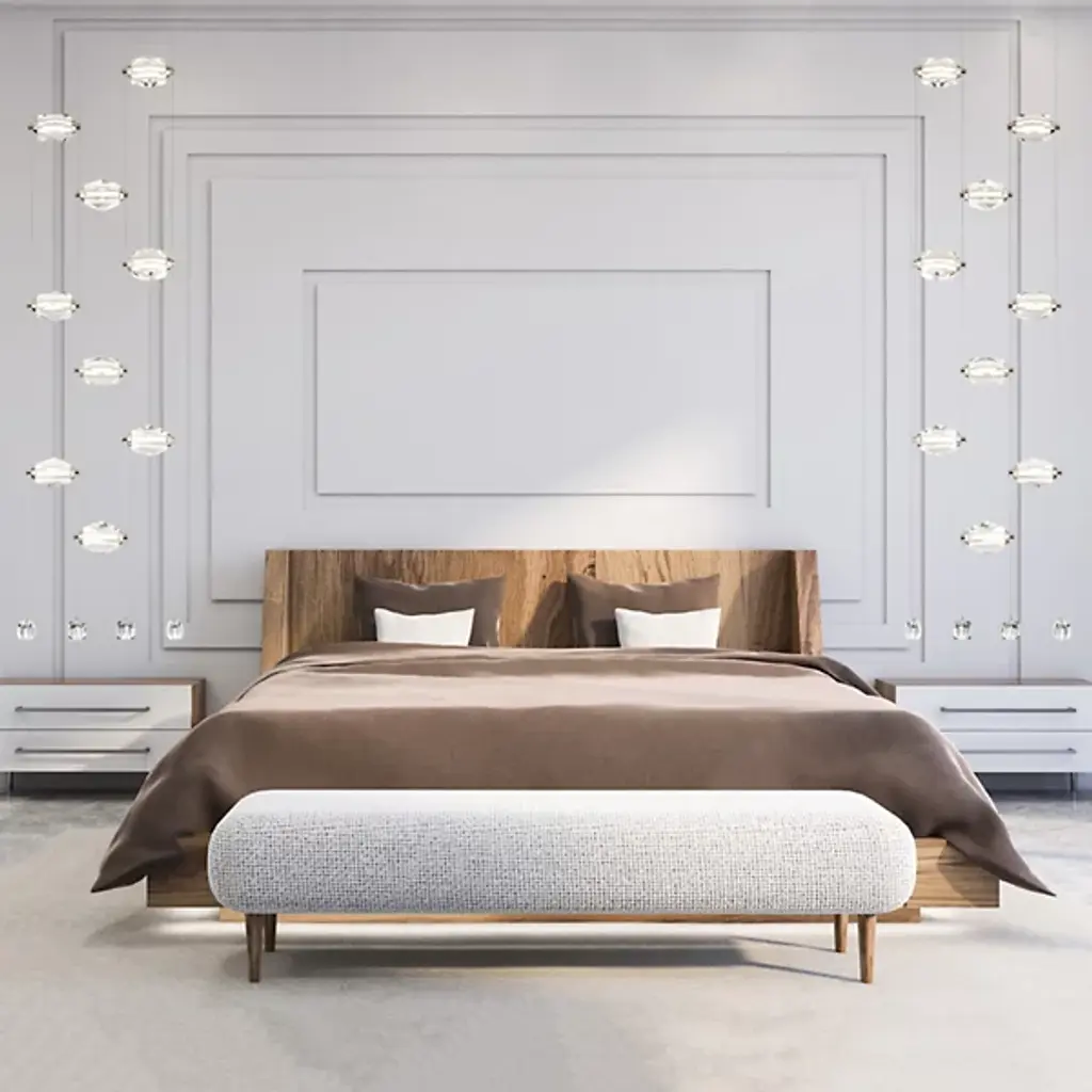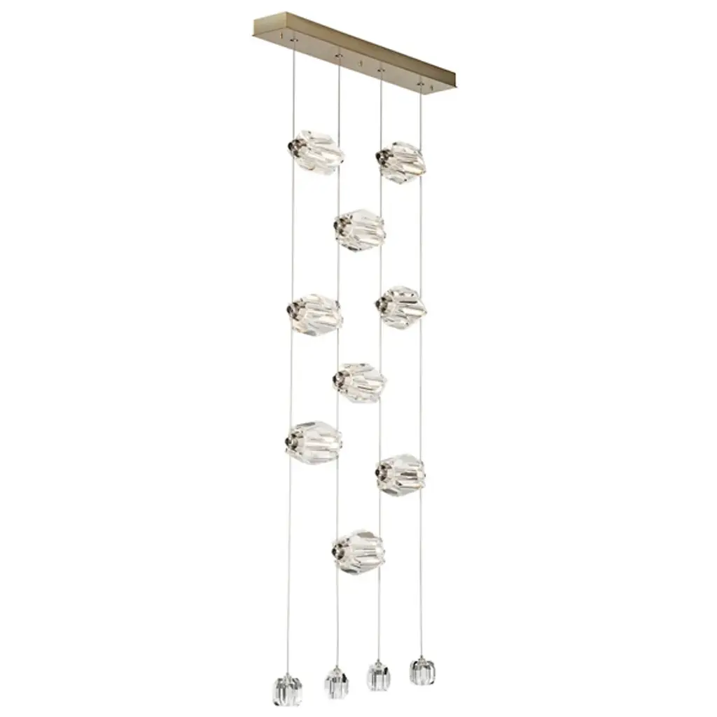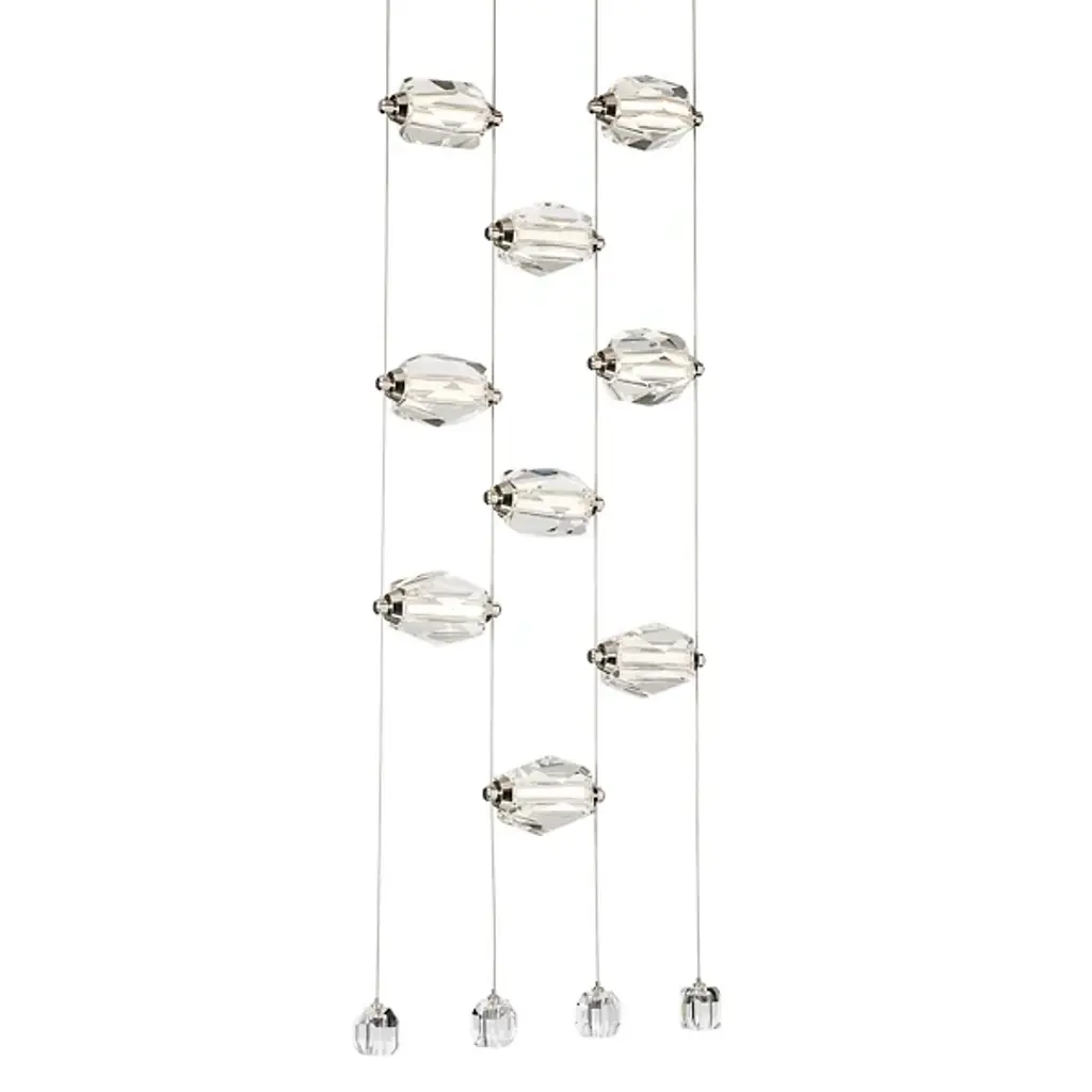 A veritable curtain of sparkling decadence for modern interiors. The Gatsby LED Linear Suspension by Hubbardton Forge is an ultra-modern take on classic crystal chandelier, with numerous crystal shades spanning slender low-voltage cables that are weighed down by crystal endpoints for added stability and shimmer. The shades can be moved up or down the cables to create just the right configuration. In place over a dining table or large foyer, this linear suspension produces both dazzling plays of light and useful ambience.